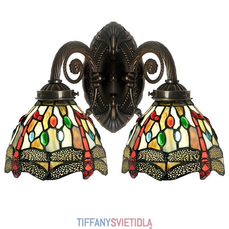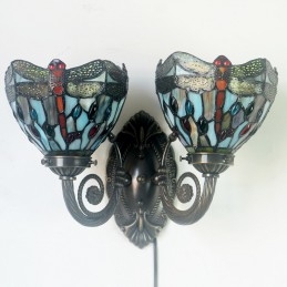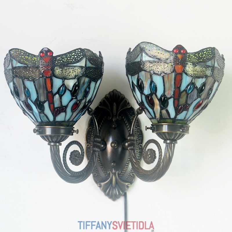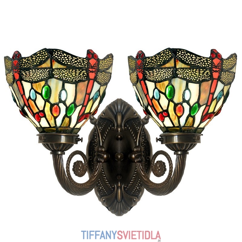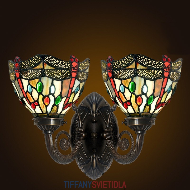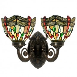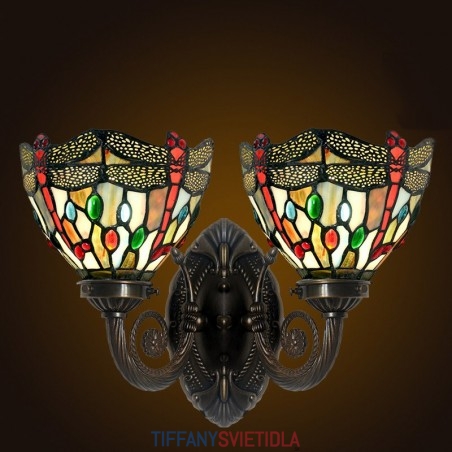 Retro 2 Light Dragonfly Tiffany Stained Glass Nástenné svietidlo