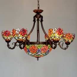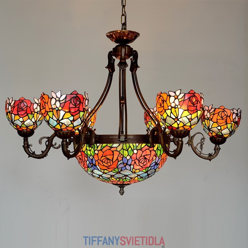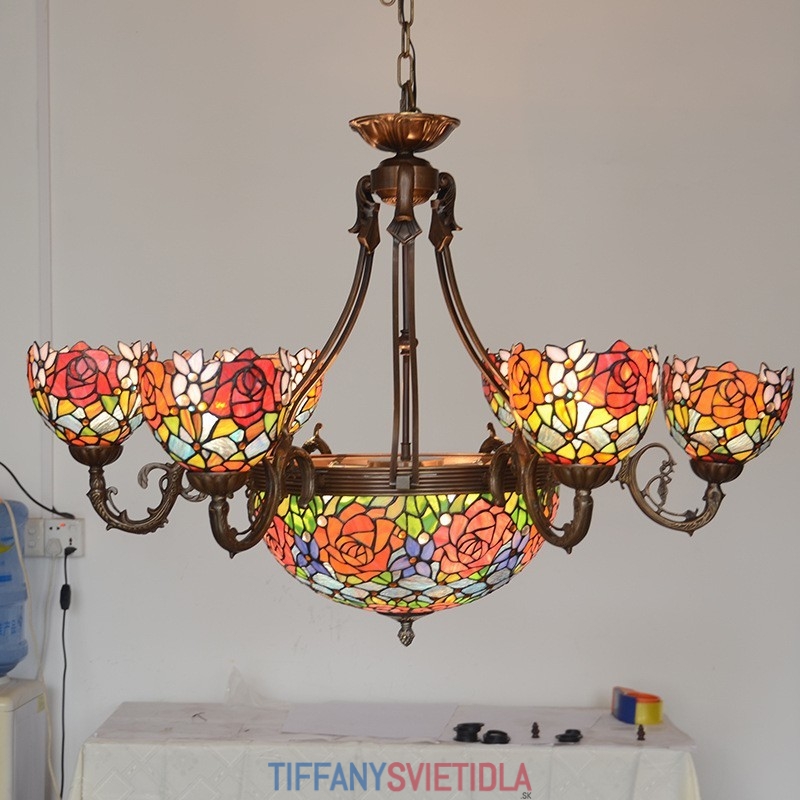 Luster z vidieckej ruže Tiffany vitrážový luster