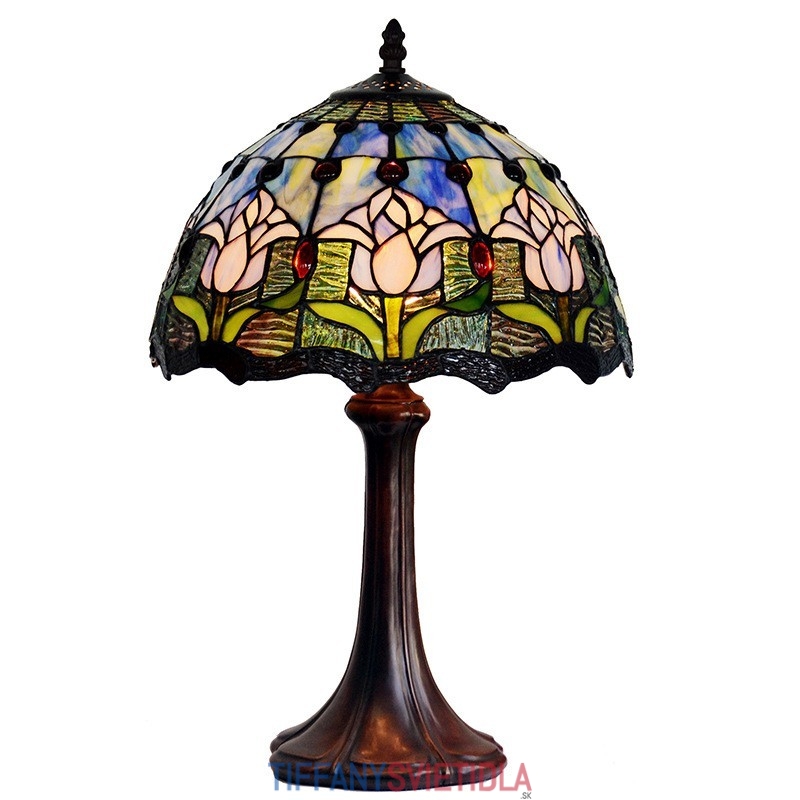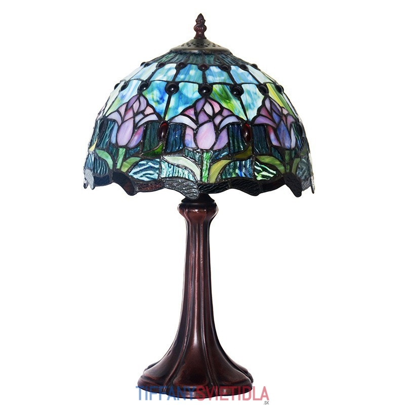 30 cm Modrá tulipánová stolová lampa z farebného skla Tiffany