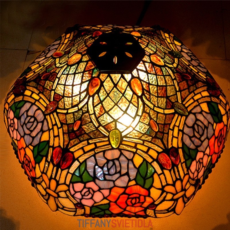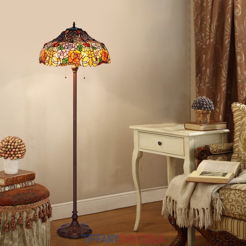 Stojacia lampa z farebného skla 45 cm Rose Tiffany