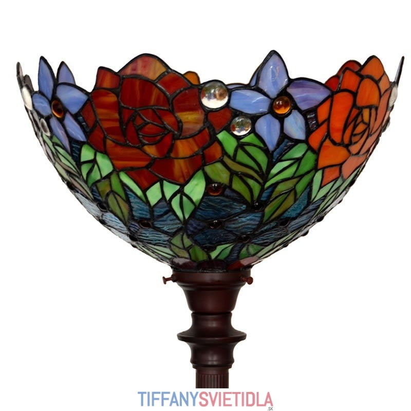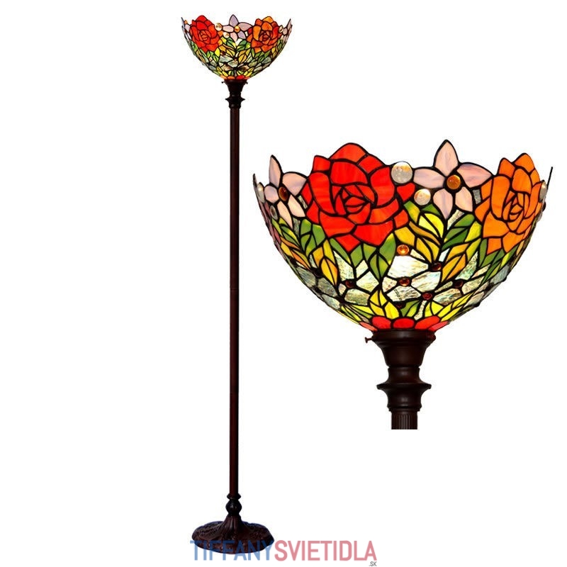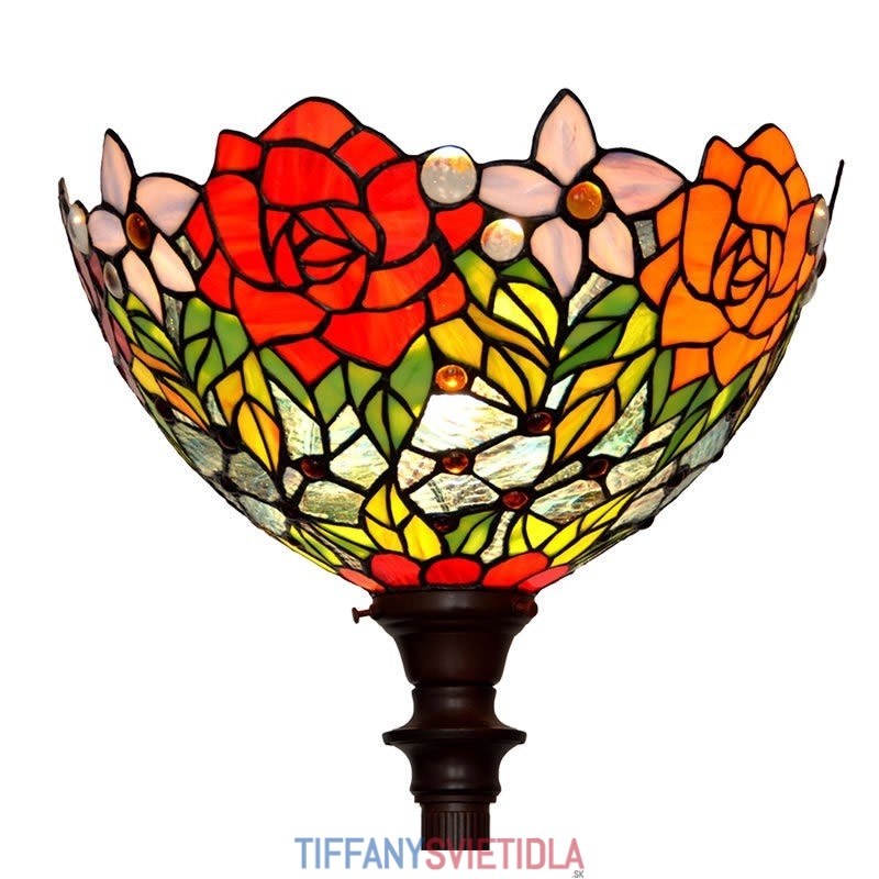 Stojacia lampa z farebného skla Rose Tiffany