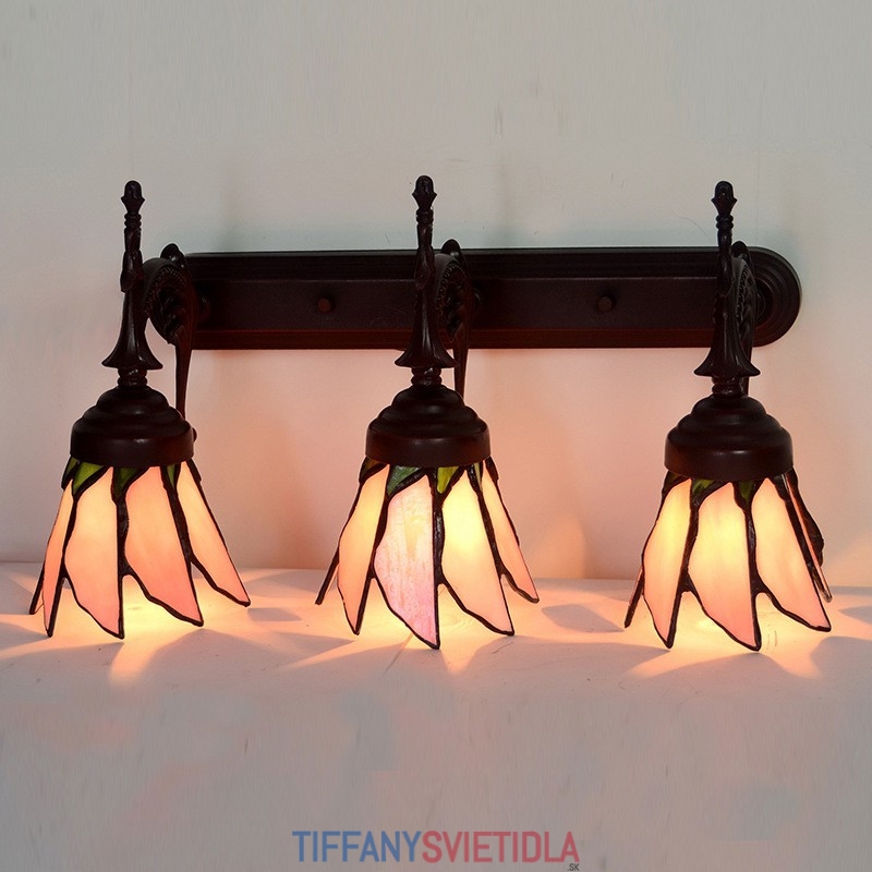 Rustic Rural Pink 3 Light Tiffany Stained Glass Nástenné svietidlo