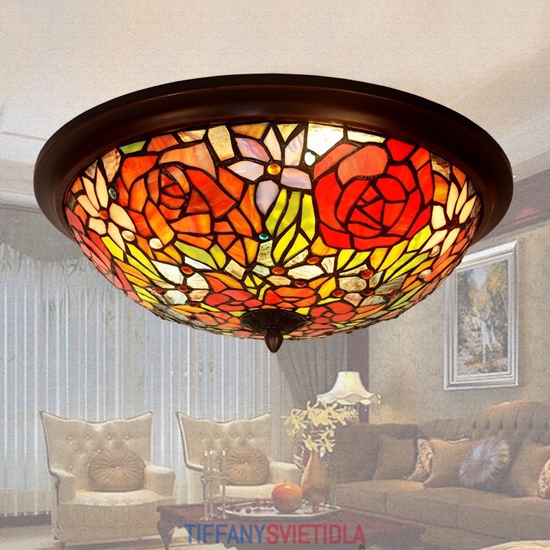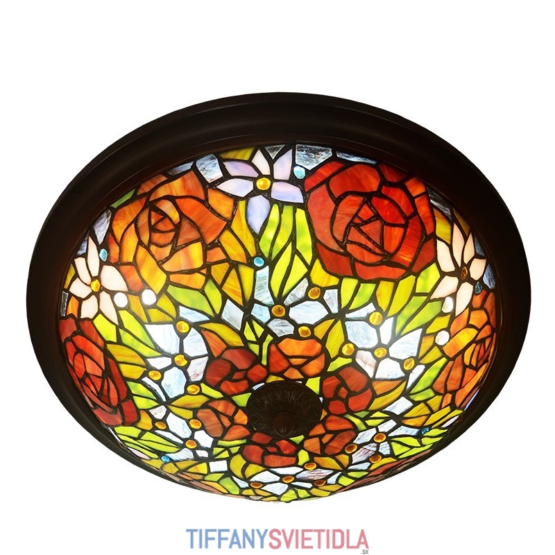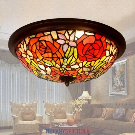 40 cm Retro Rose Tiffany vitrážový držiak na zapustené sklo