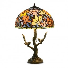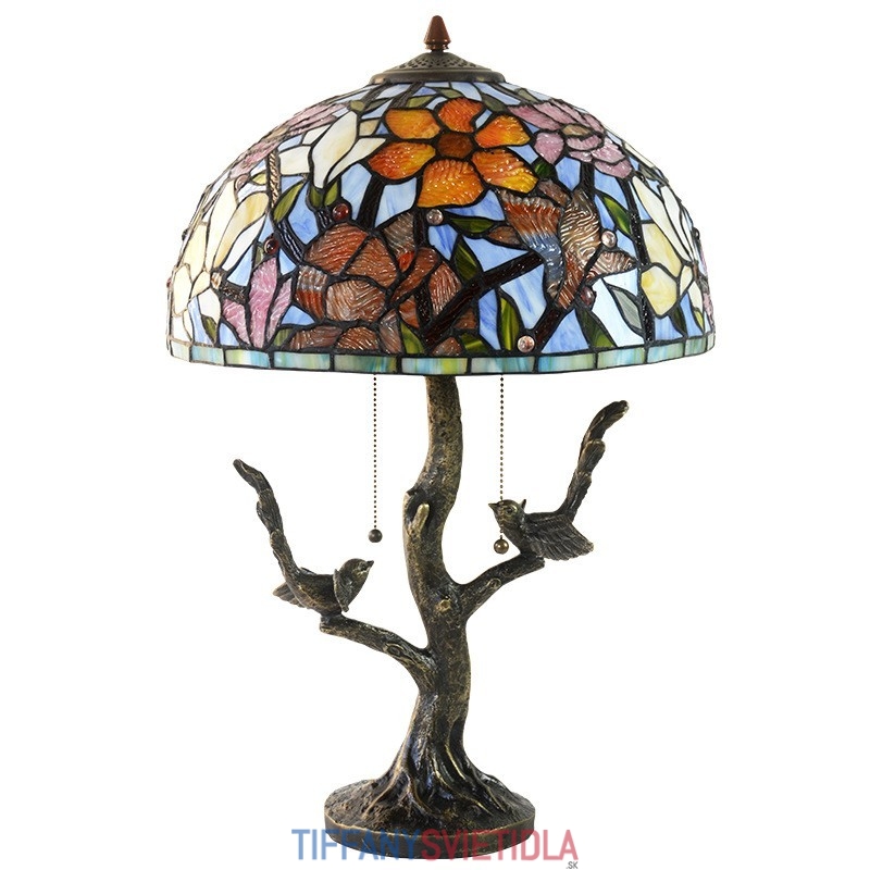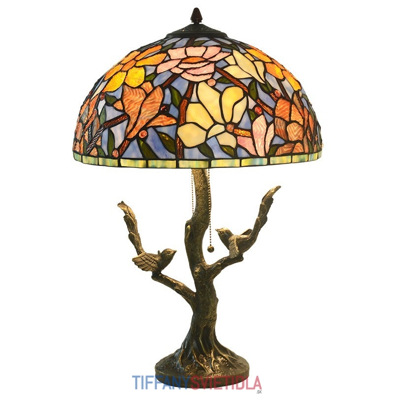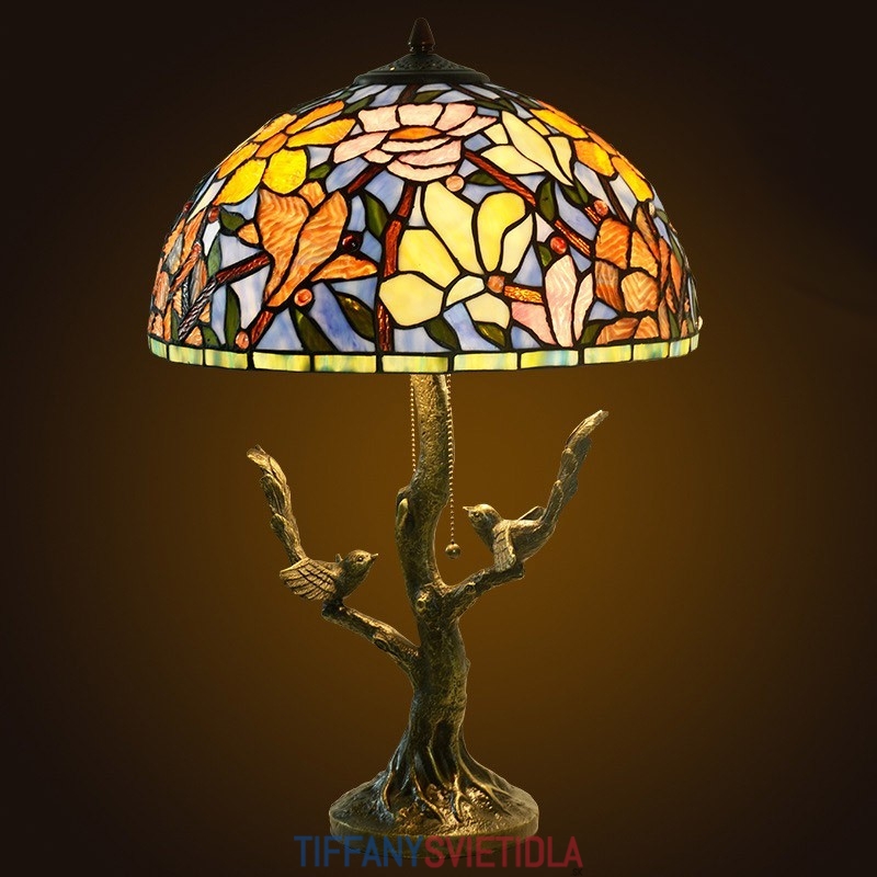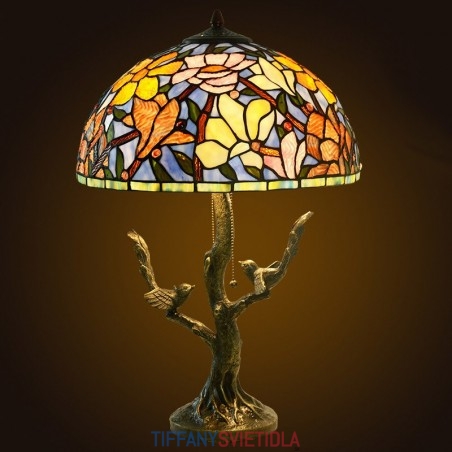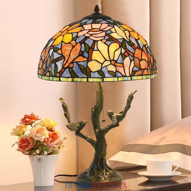 40 cm Kvetina magnólie Tiffany Stolná vitrážová lampa