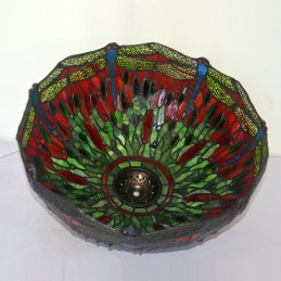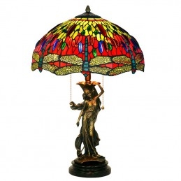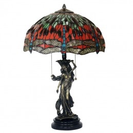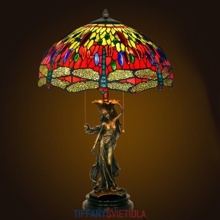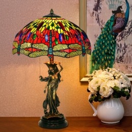 40 cm Retro mosadzná stolová lampa z farebného skla Tiffany