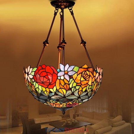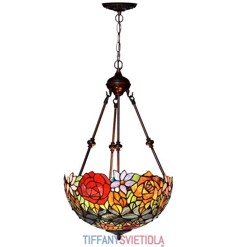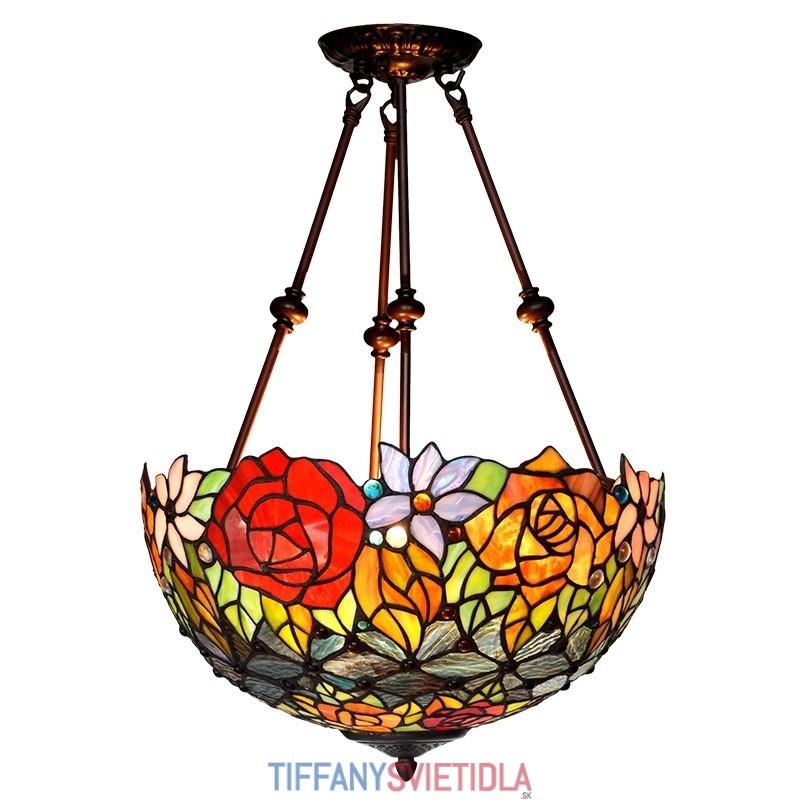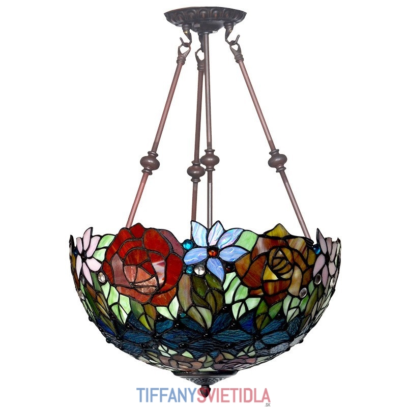 Závesné svietidlo z farebného skla Rose Tiffany 40 cm