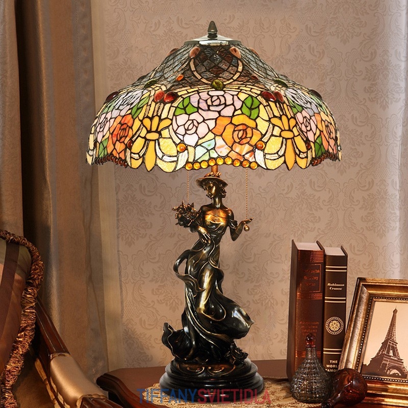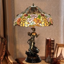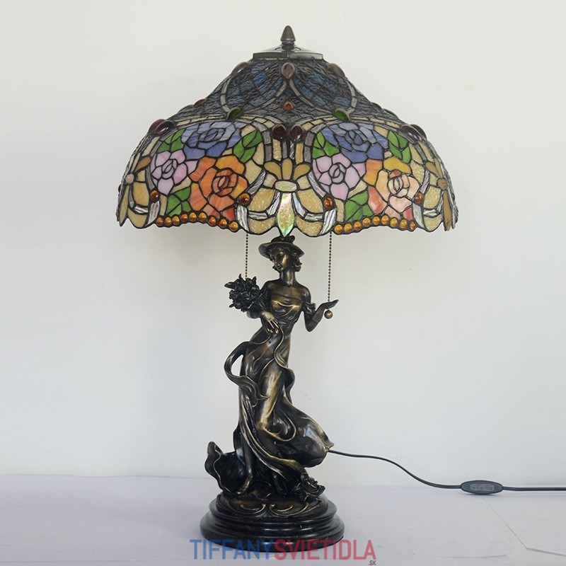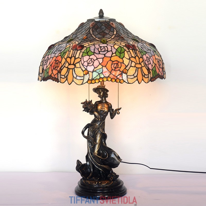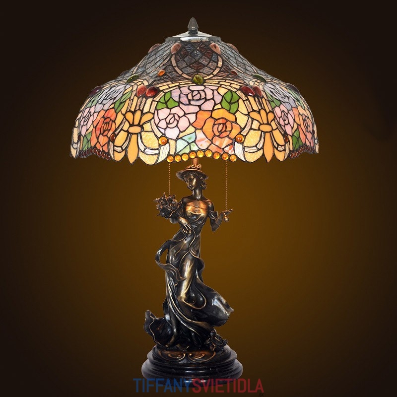 Stolová lampa z farebného skla Rose Tiffany 45 cm