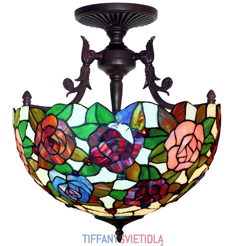 Závesné svietidlo z farebného skla Rose Tiffany 40 cm