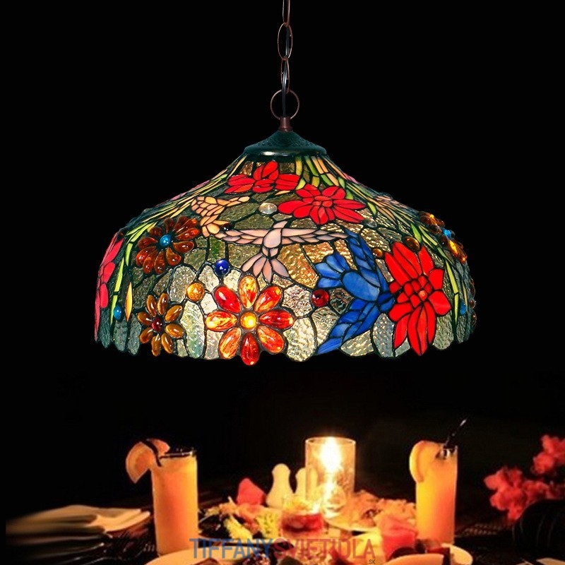 40 cm Retro závesné svietidlo z farebného skla Tiffany