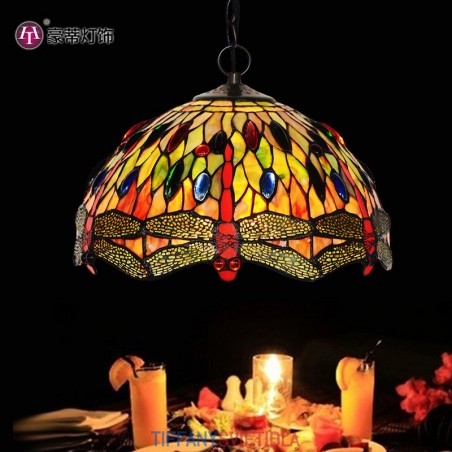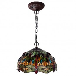 30 cm závesné svietidlo Vážka Tiffany z farebného skla