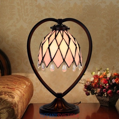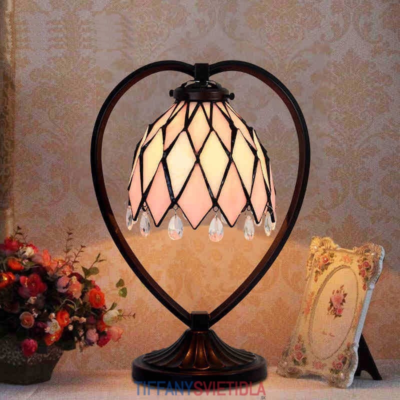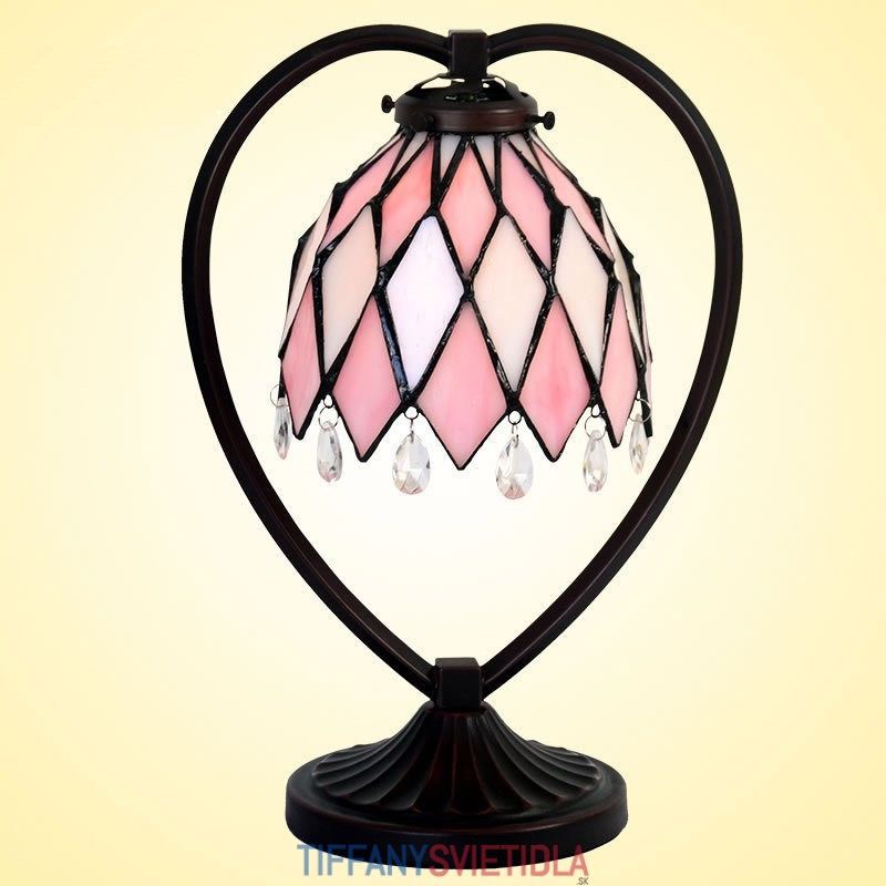 18 cm Ružová stolová lampa z farebného skla Tiffany