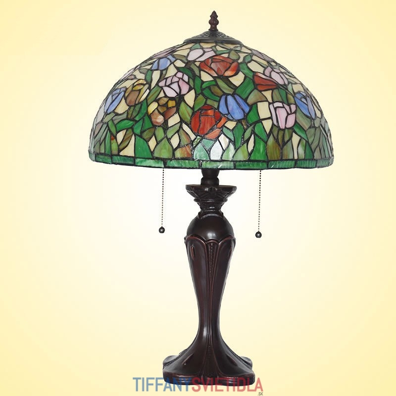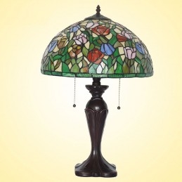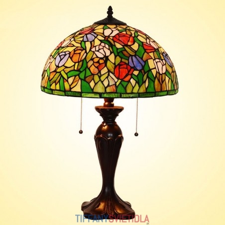 40 cm Rustikálna tulipánová stolová lampa z farebného skla Tiffany