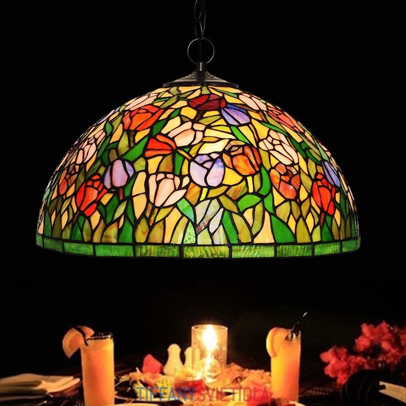 50 cm Tulipán 1 Light Tiffany Stained Glass Závesné svetlo