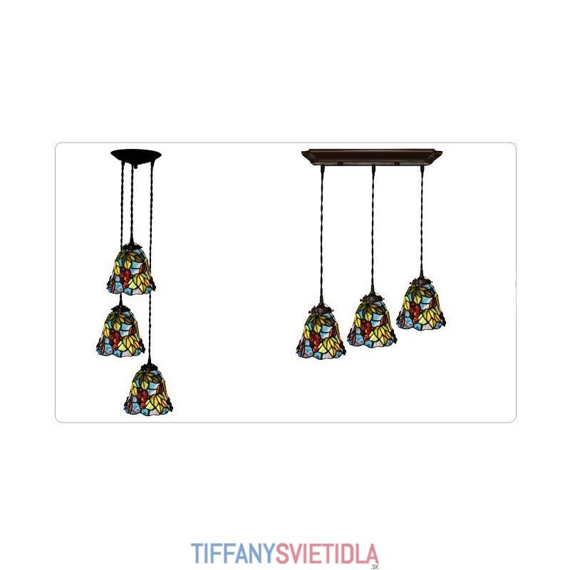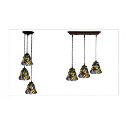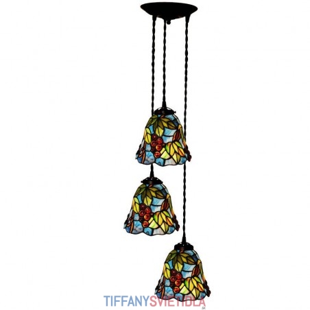 Rustikálne 3 svetlo hroznové závesné svietidlo z farebného skla Tiffany