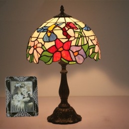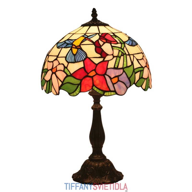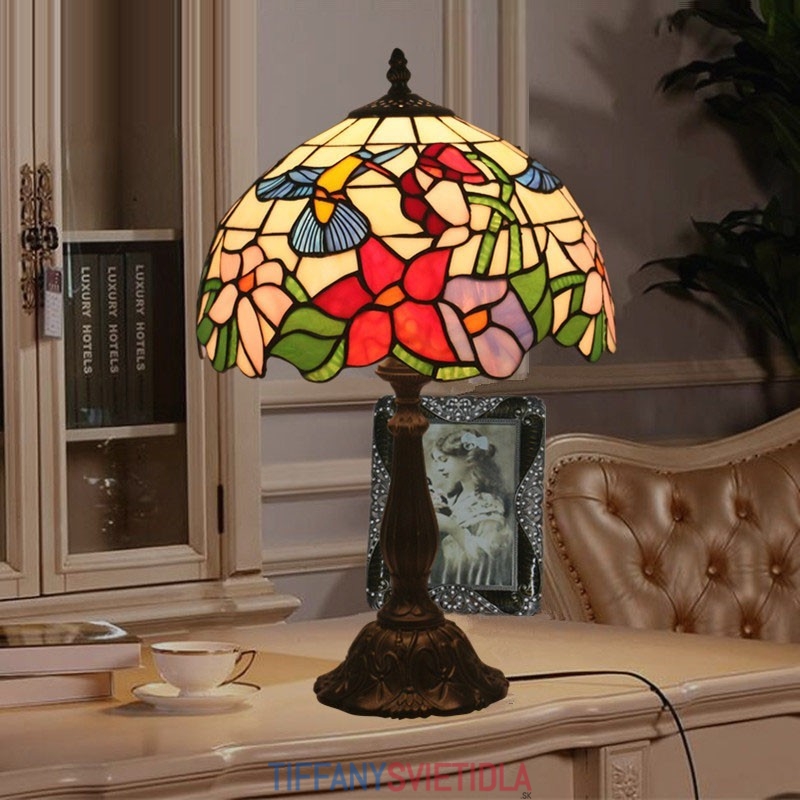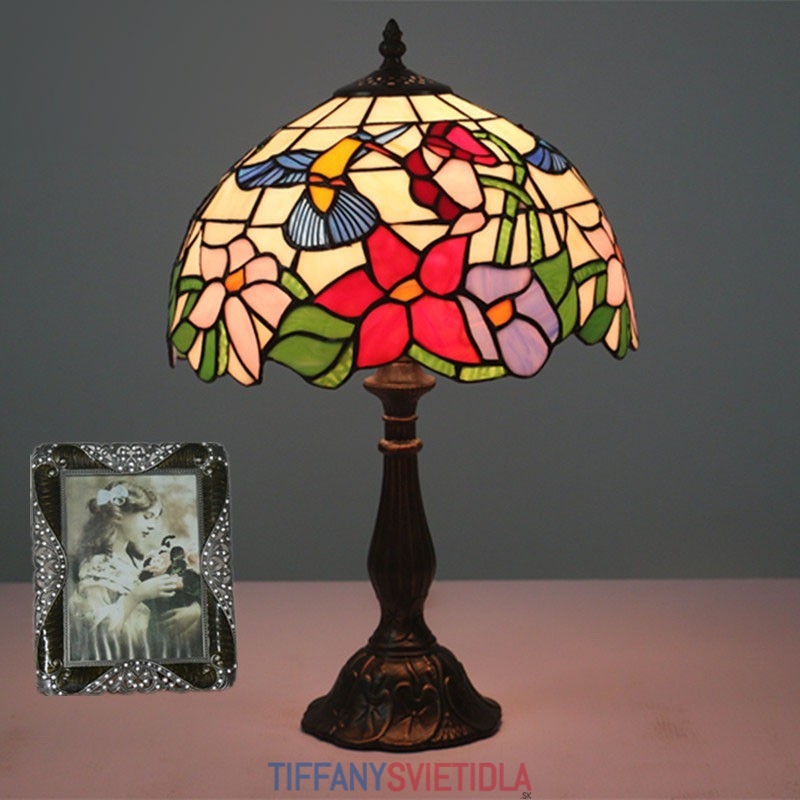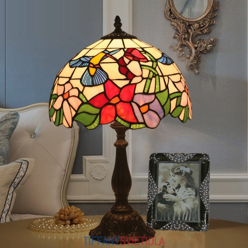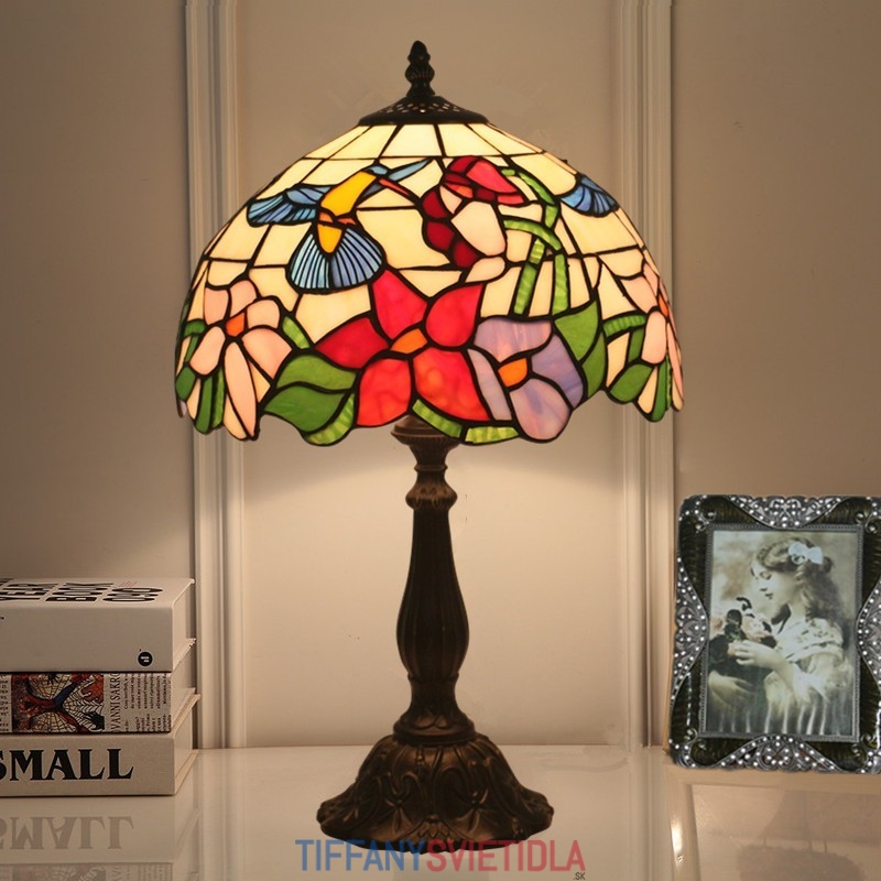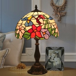 30 cm Európska stolná lampa z farebného skla Tiffany v štýle kolibríka