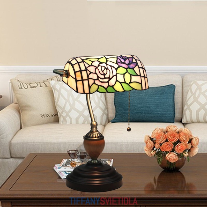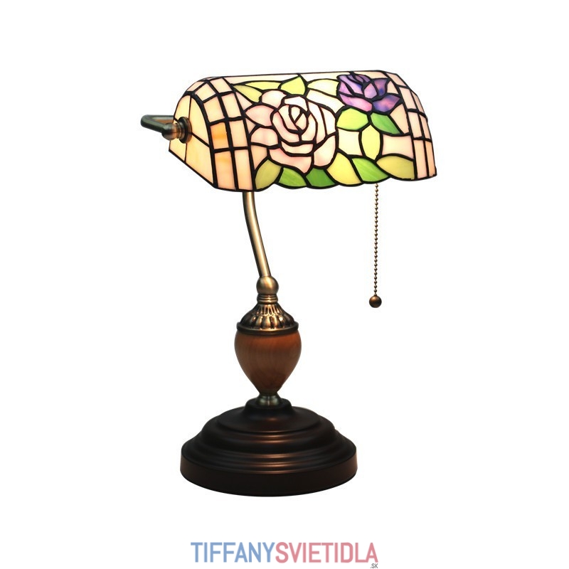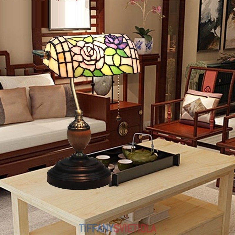 Európska stolná lampa z farebného skla v štýle Tiffany v štýle ruže