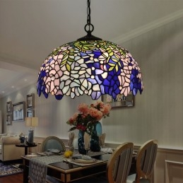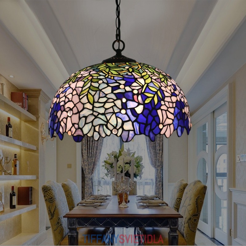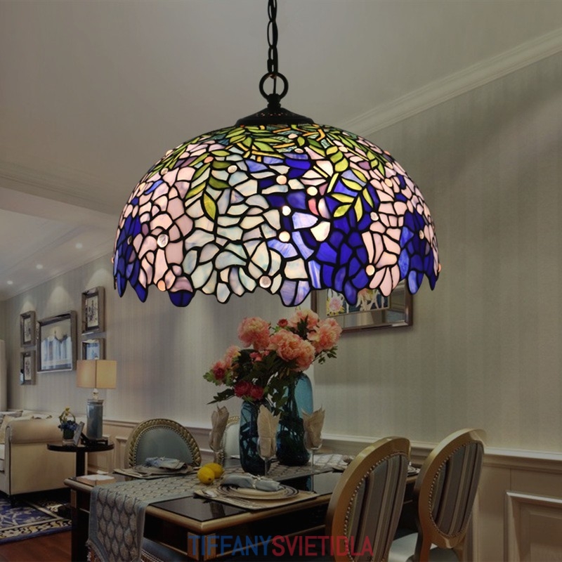 40 cm Európske závesné svietidlo z farebného skla Wisteria Style Tiffany
