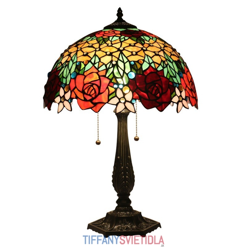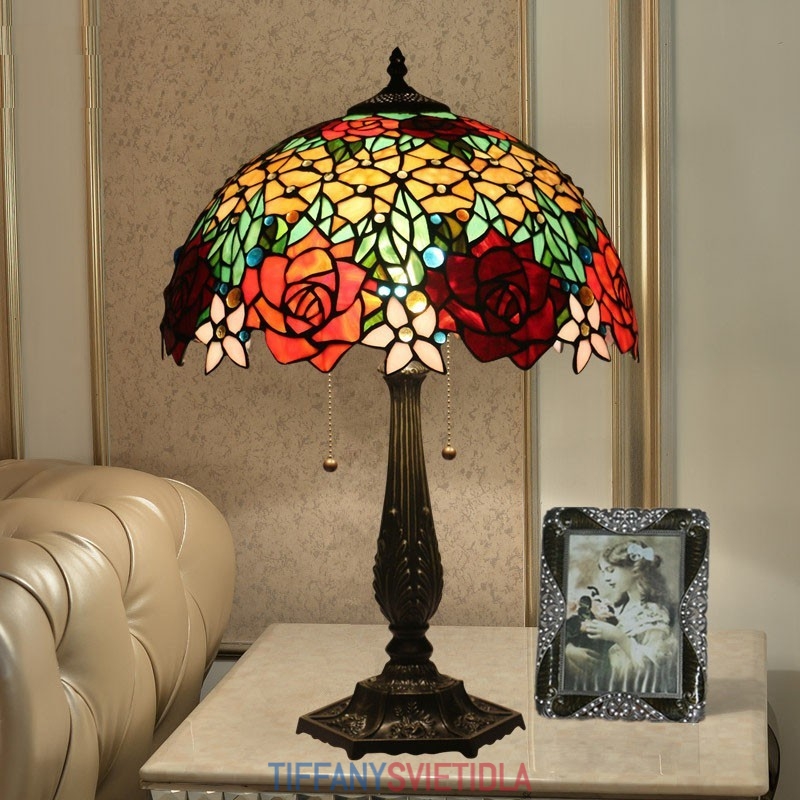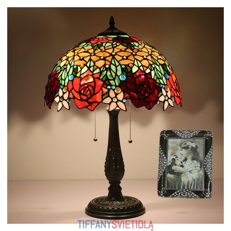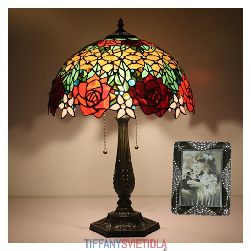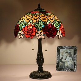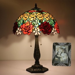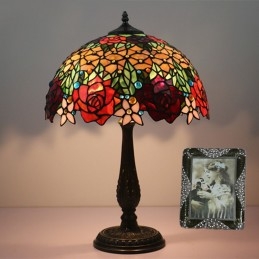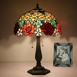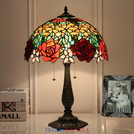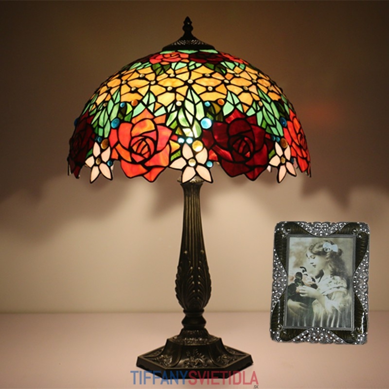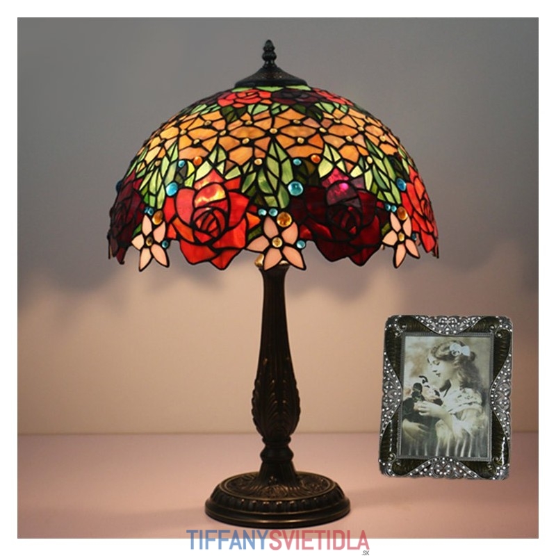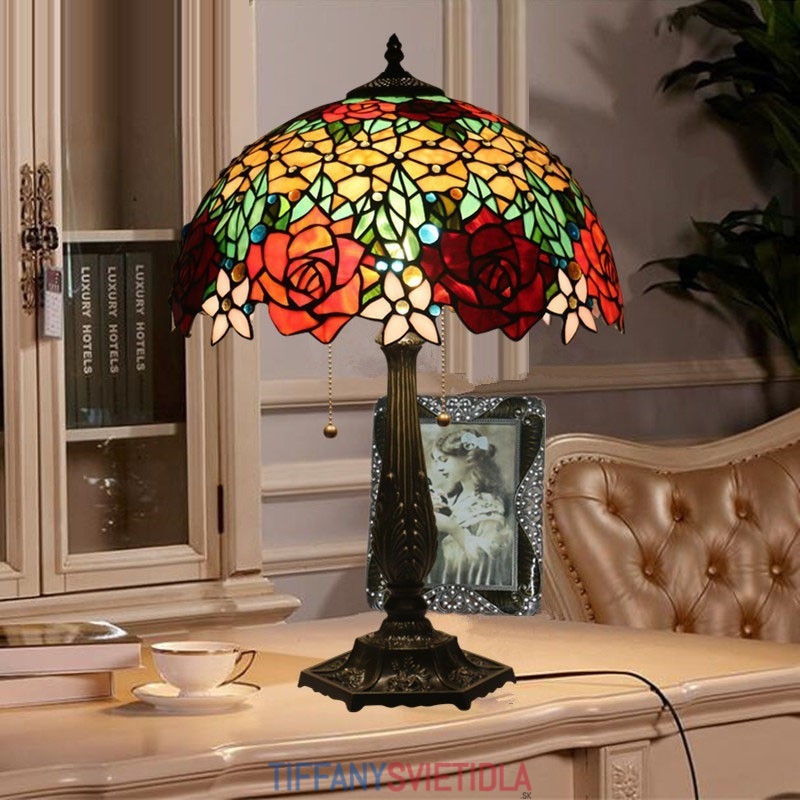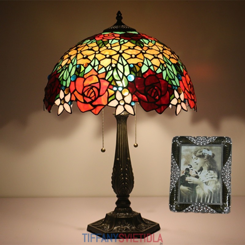 40 cm Európska stolová lampa Tiffany z farebného skla v štýle ruže