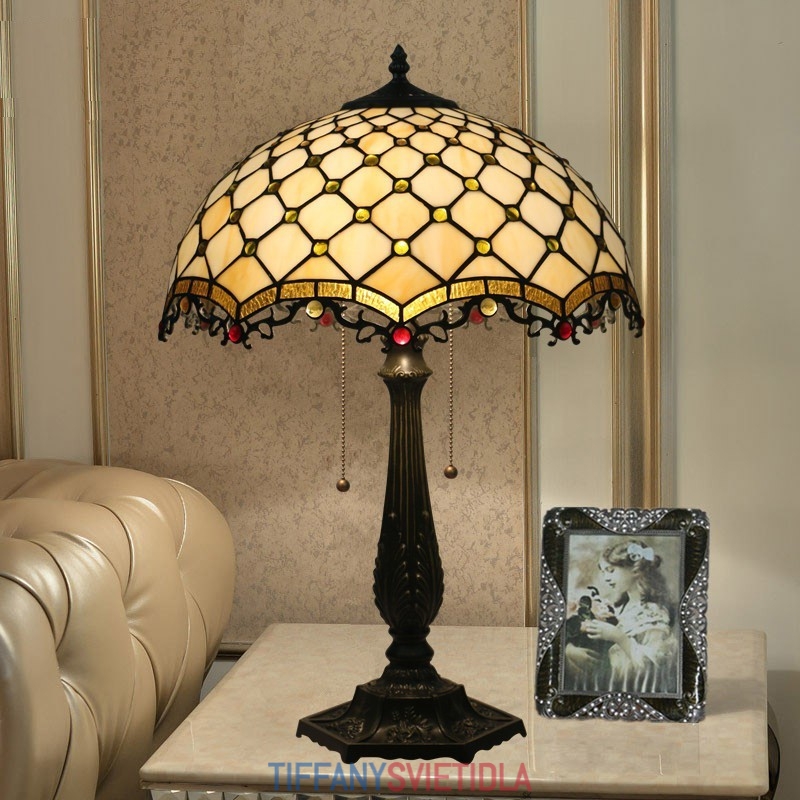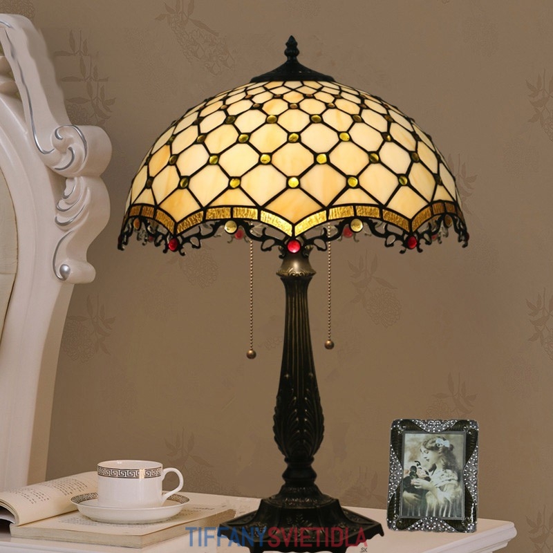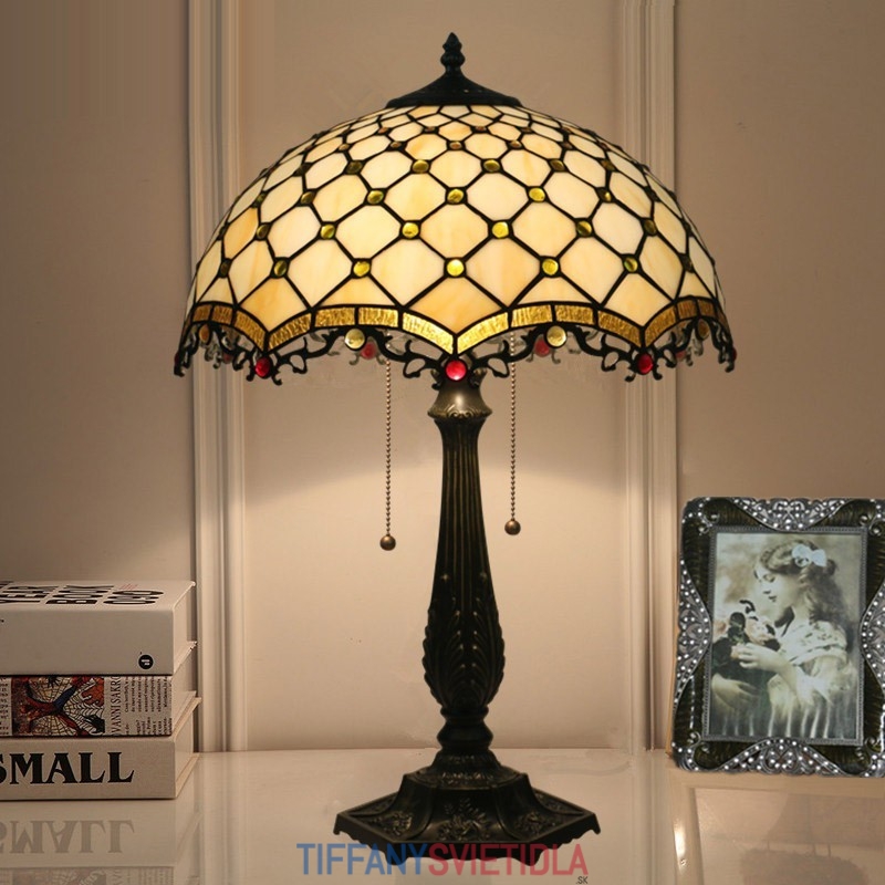 40 cm Americká stolová lampa Tiffany z farebného skla