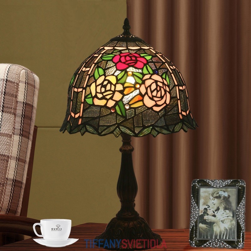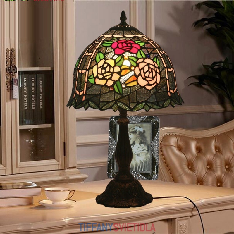 30 cm Európska stolová lampa Tiffany z farebného skla