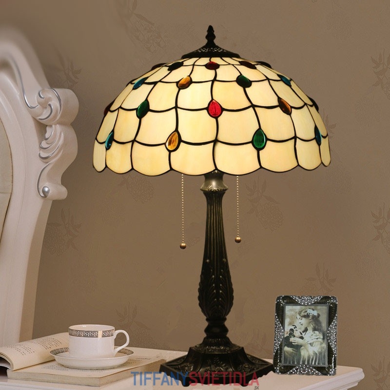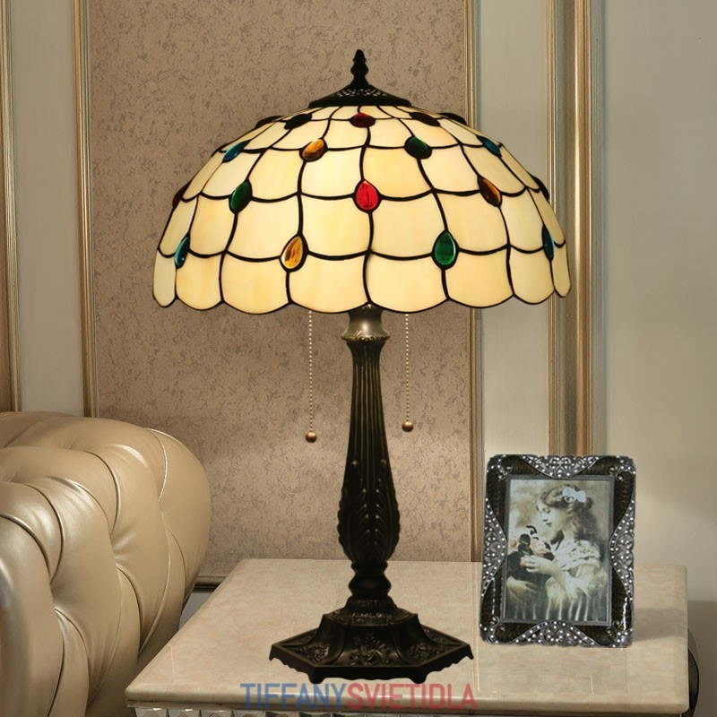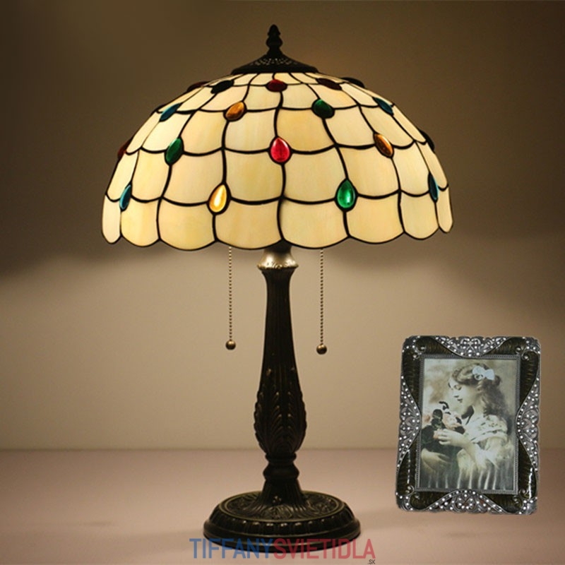 40 cm Európska stolová lampa Tiffany z farebného skla