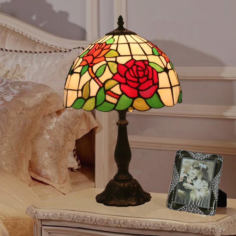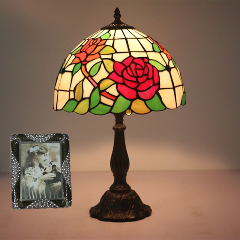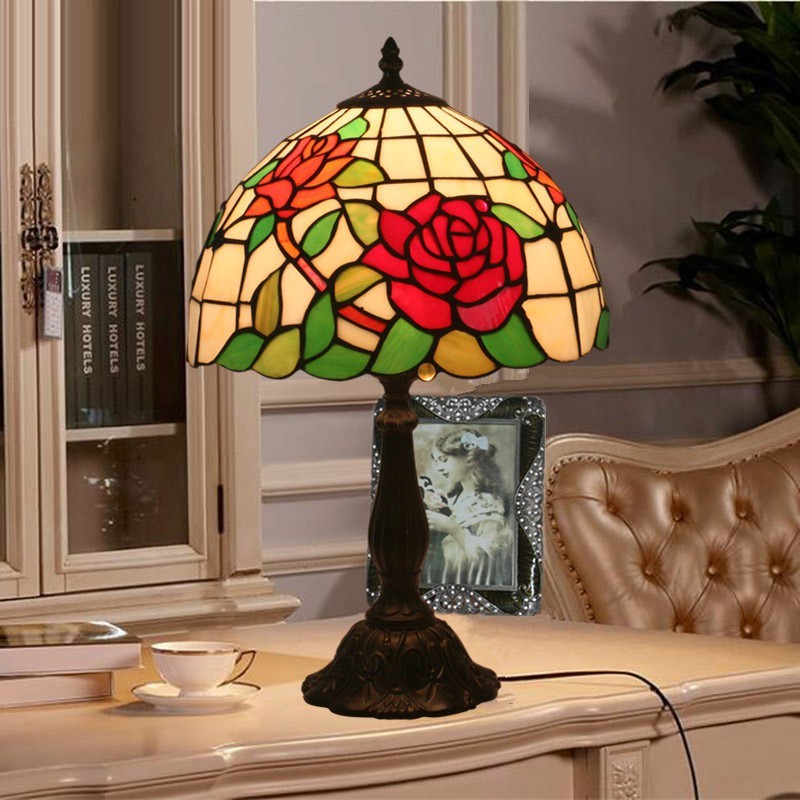 30 cm Európska stolná lampa z farebného skla v štýle ruže Tiffany
