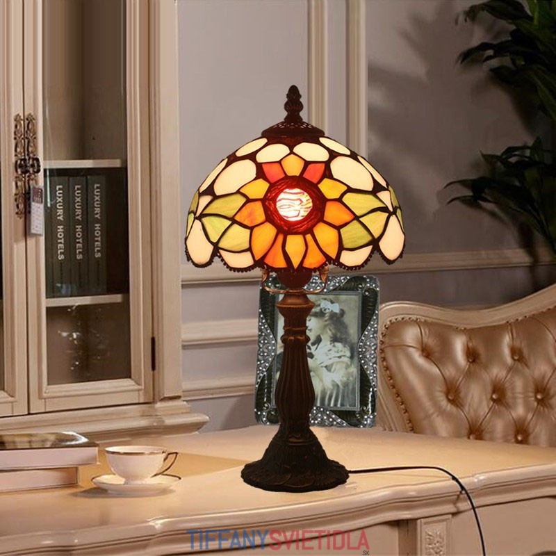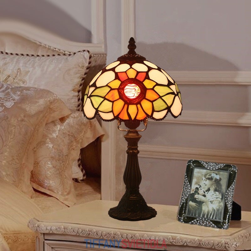 20 cm Európska stolná lampa Tiffany v štýle slnečnice z farebného skla