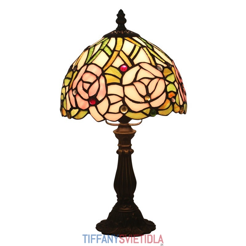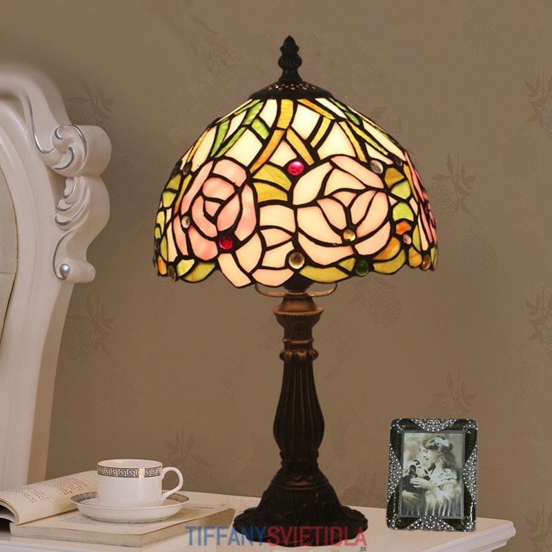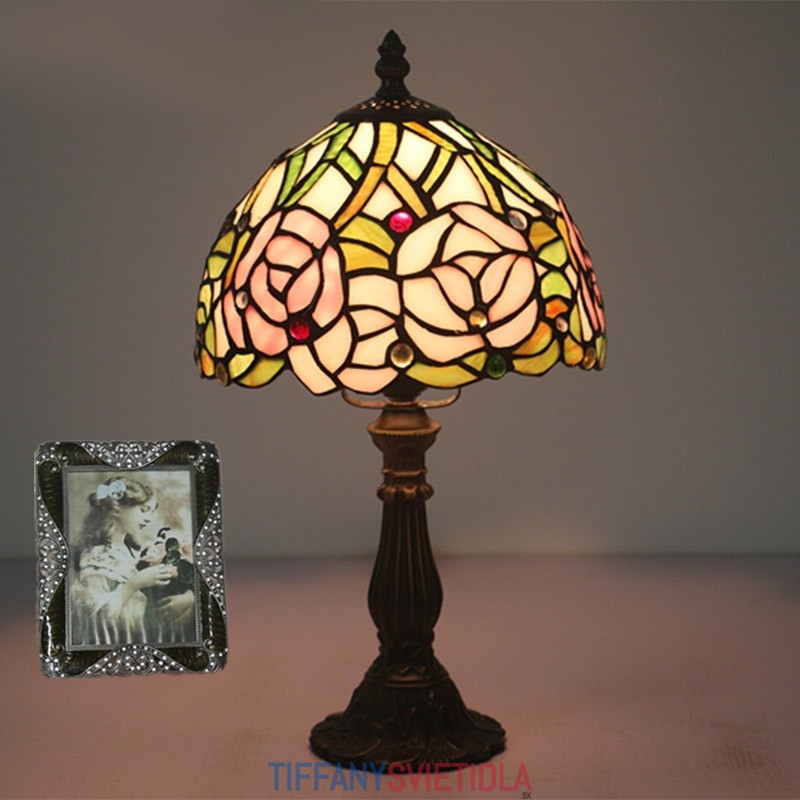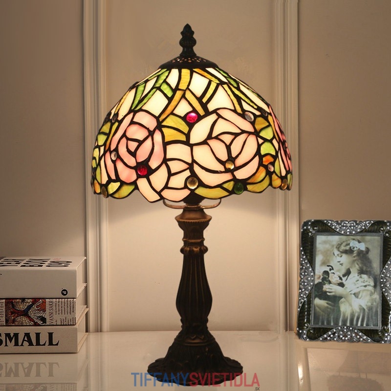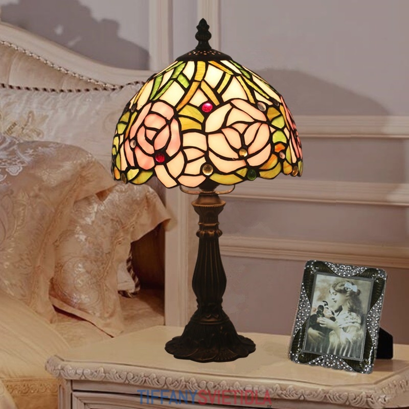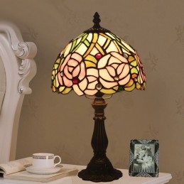 20 cm Európska stolová lampa Tiffany z farebného skla v štýle ruže