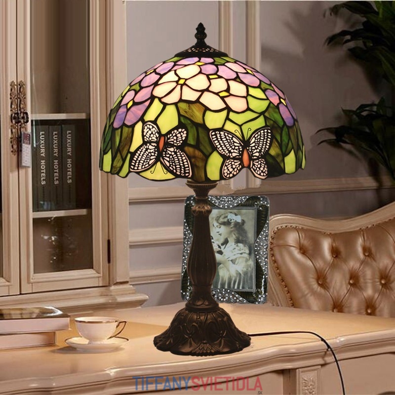 30 cm Európska stolná lampa Tiffany z farebného skla v štýle motýľa