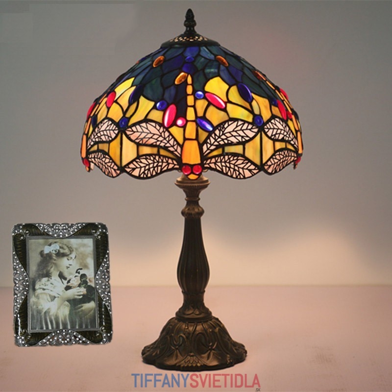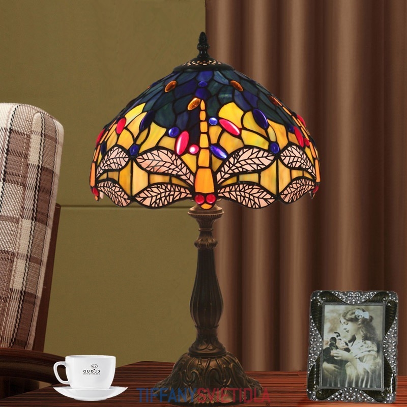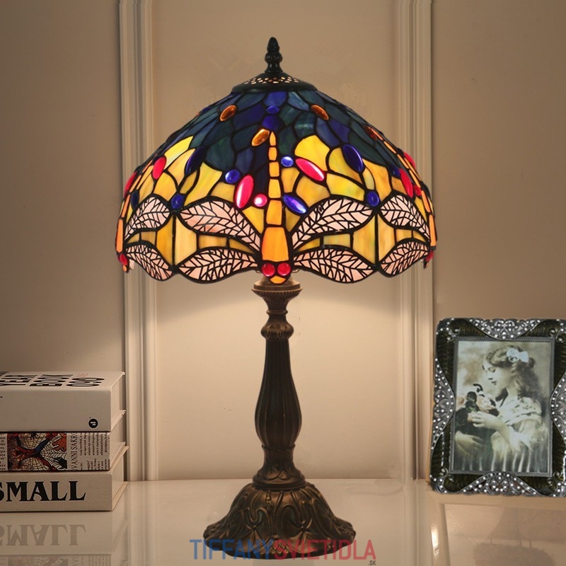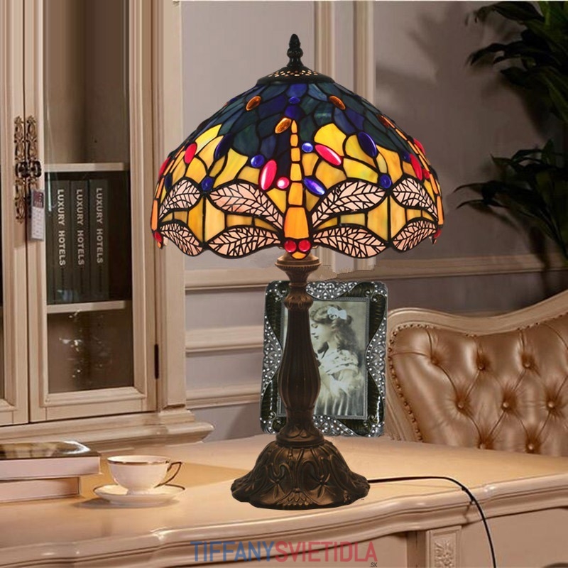30 cm Európska stolná lampa Tiffany v štýle vážky z farebného skla