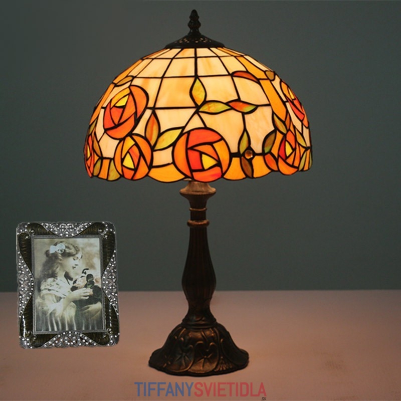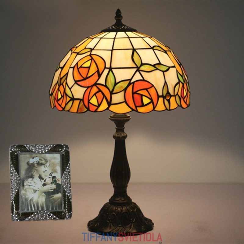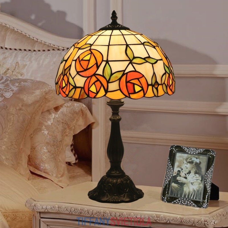 30 cm Európska stolná lampa z farebného skla v štýle ruže Tiffany