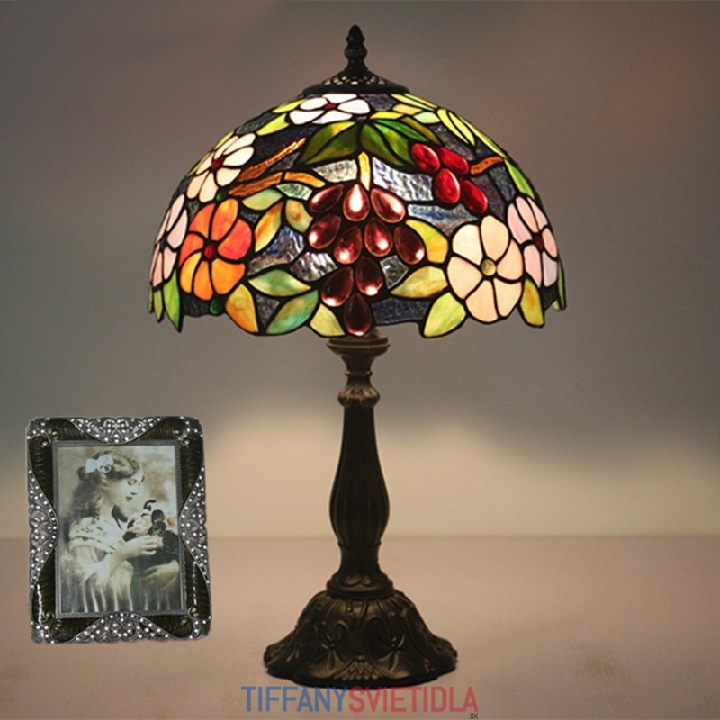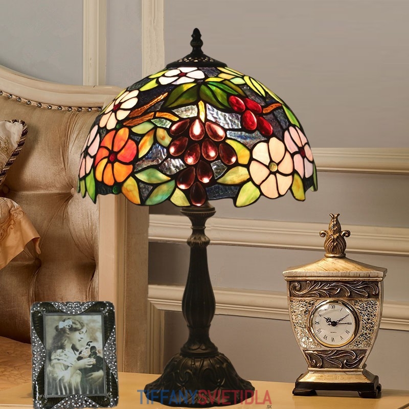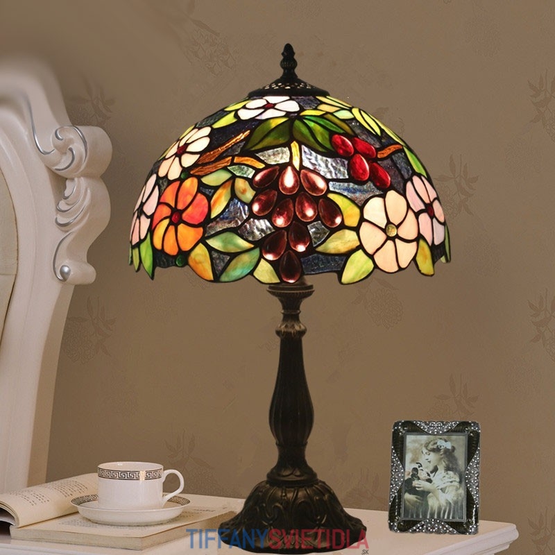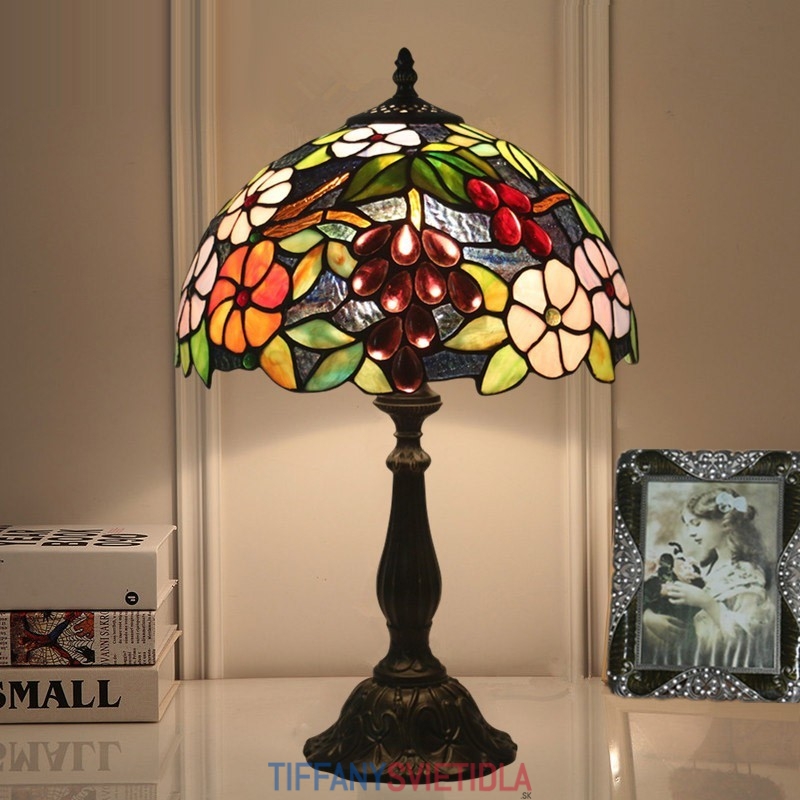30 cm Európska stolová lampa Tiffany z farebného skla v štýle hrozna