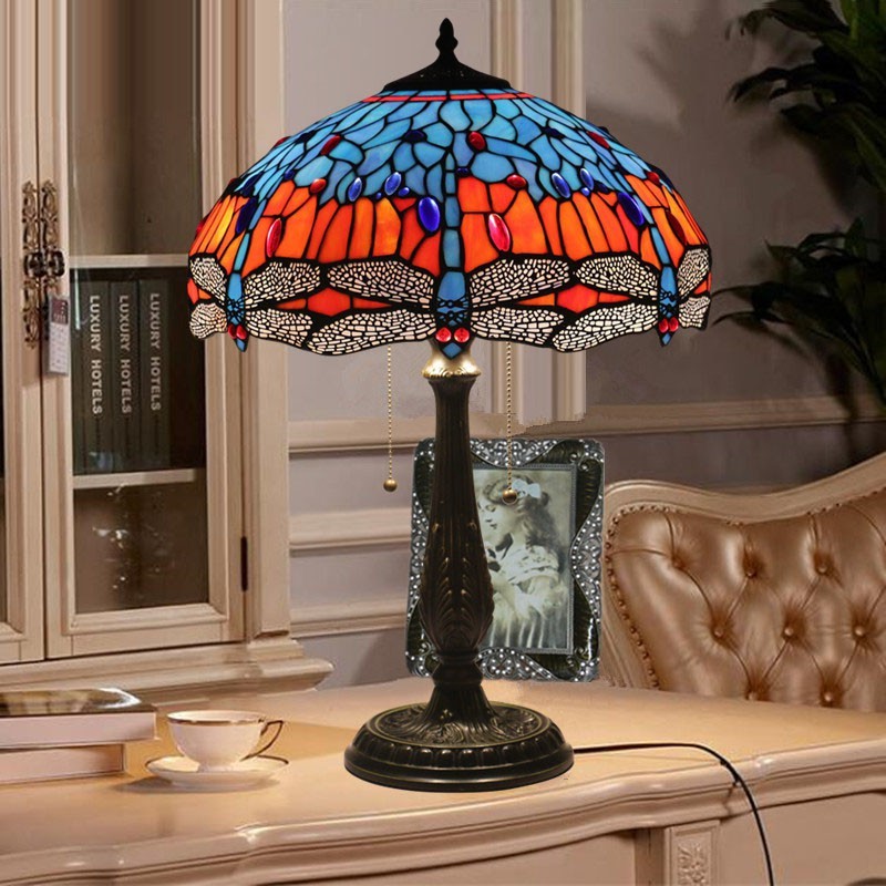 40 cm Európska stolová lampa Tiffany z farebného skla v štýle vážky