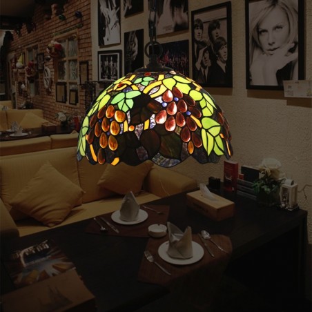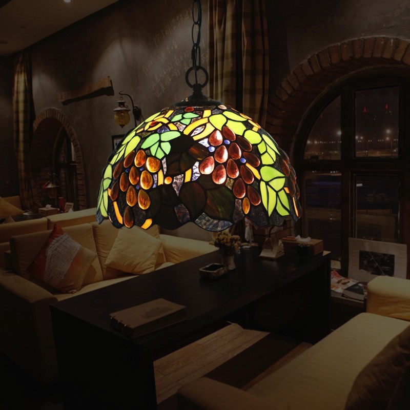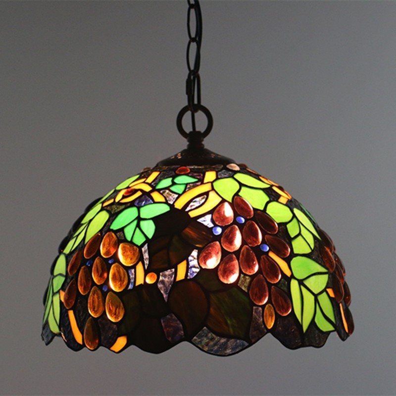 30 cm Európske závesné svietidlo Tiffany z farebného skla v štýle hrozna