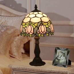 20 cm Európska stolná lampa Tiffany z farebného skla v štýle tulipánov