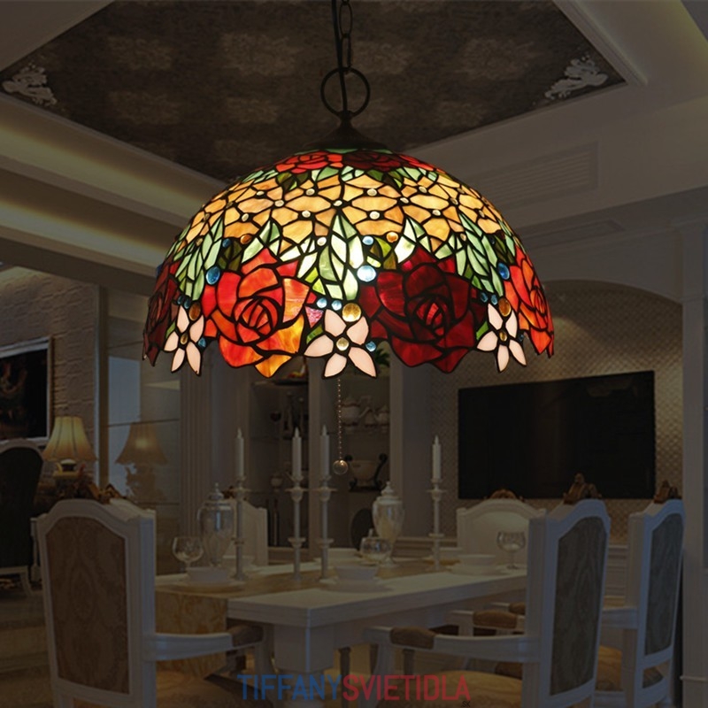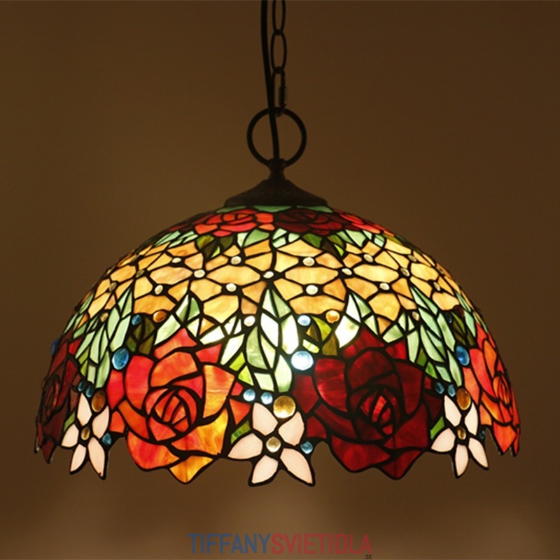 Ruža 40 cm Európska vitráž Tiffany závesné svetlo