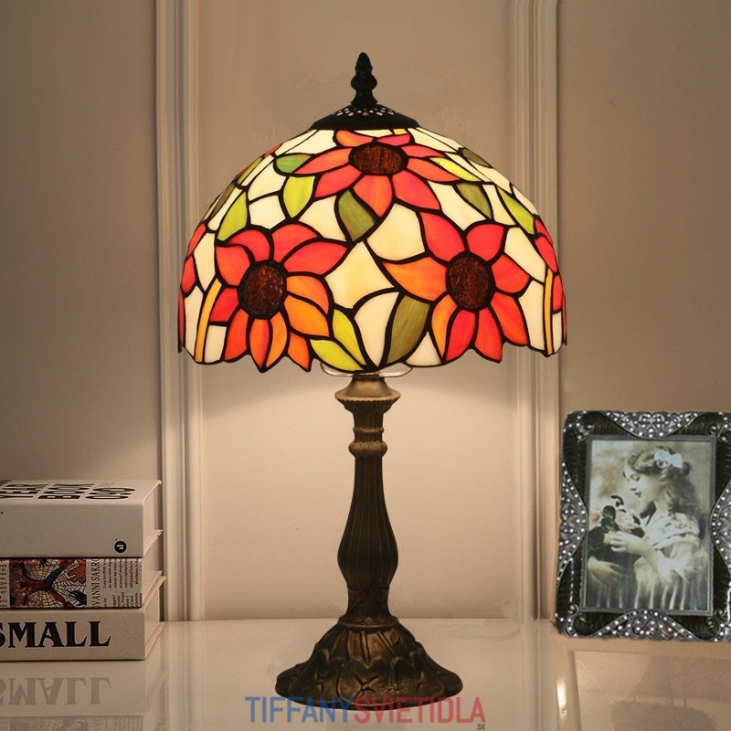 25 cm Európska stolová lampa Tiffany v štýle slnečnice z farebného skla