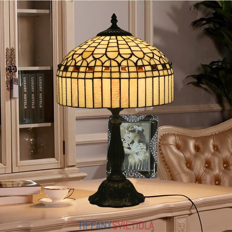 30 cm Americká jednoduchá stolná lampa Tiffany z farebného skla