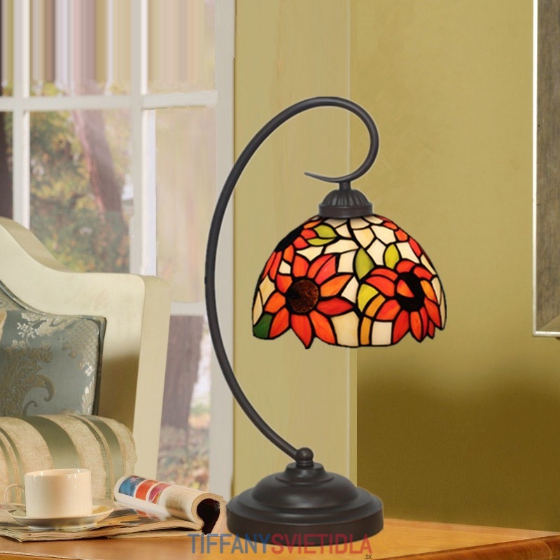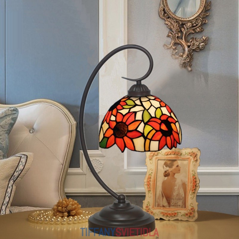 20 cm Európska stolná lampa Tiffany v štýle slnečnice z farebného skla