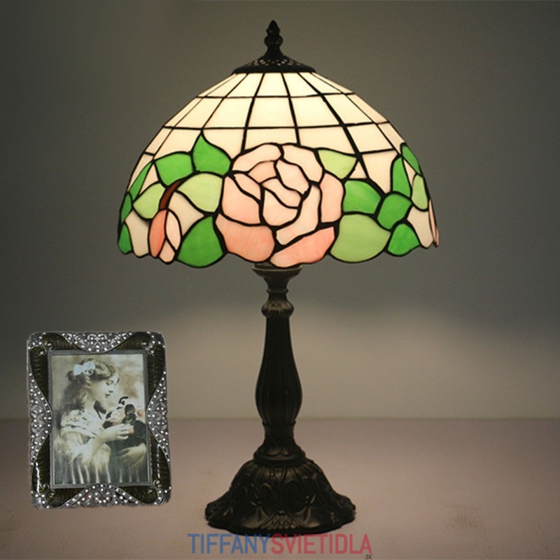 30 cm Európska stolná lampa z farebného skla v štýle ruže Tiffany
