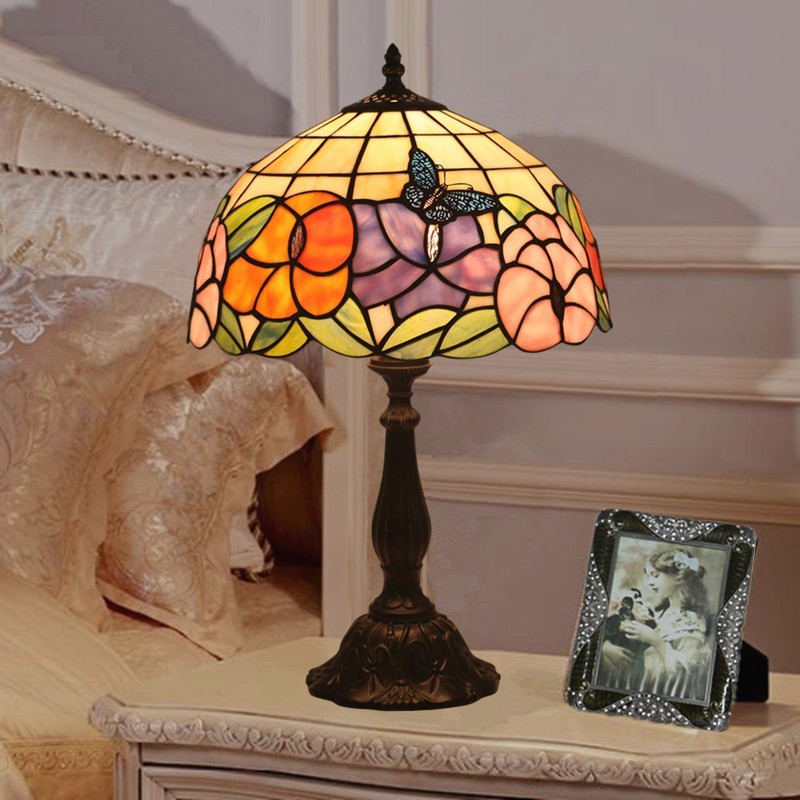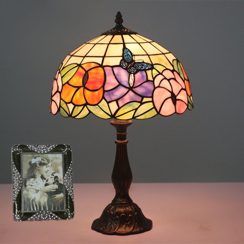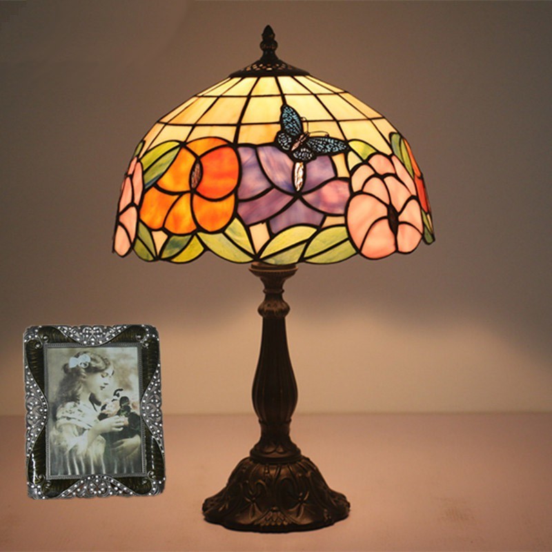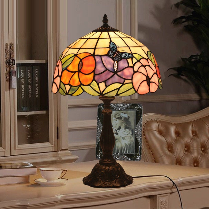 30 cm Európska stolná lampa Tiffany z farebného skla v štýle motýľa