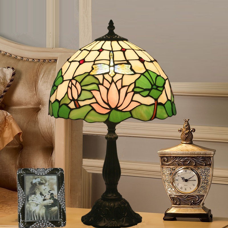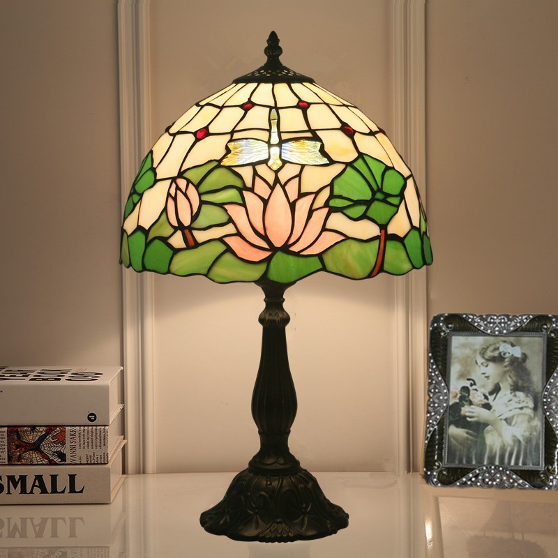 30 cm Európska stolná lampa Tiffany v štýle vážky z farebného skla
