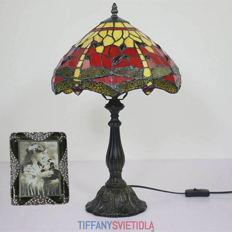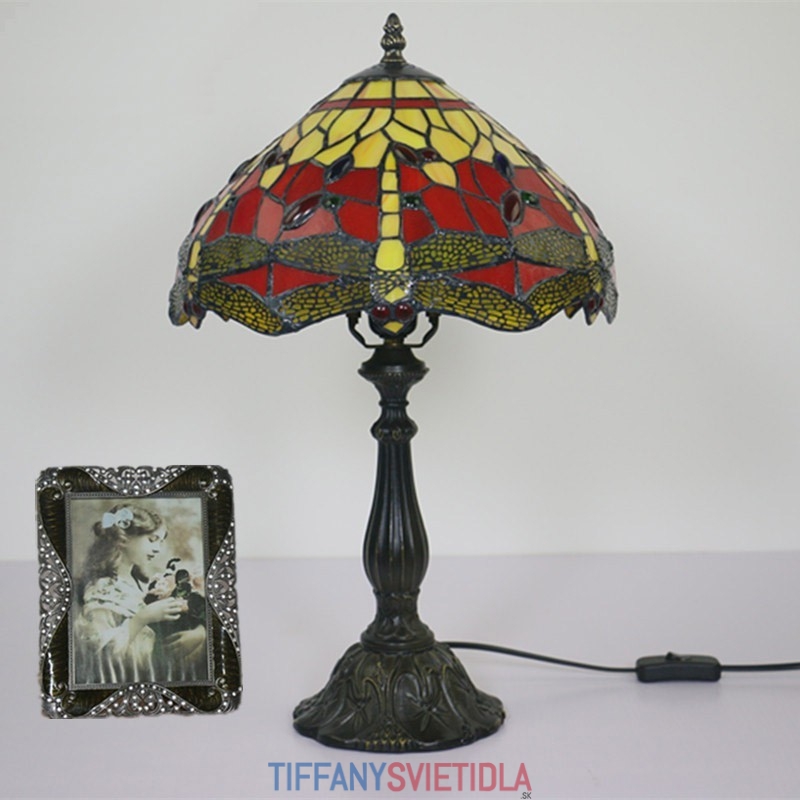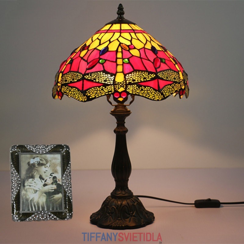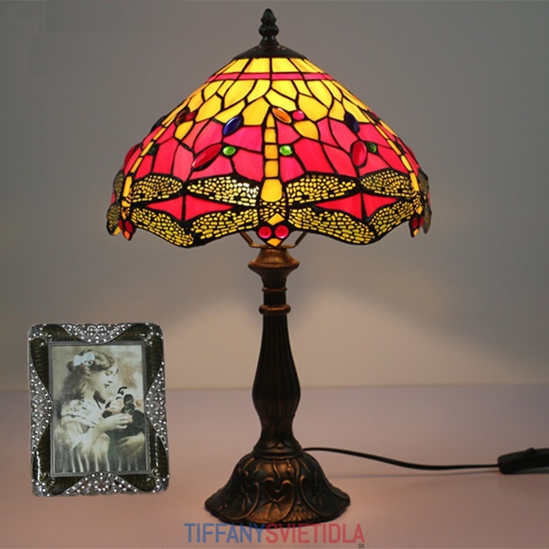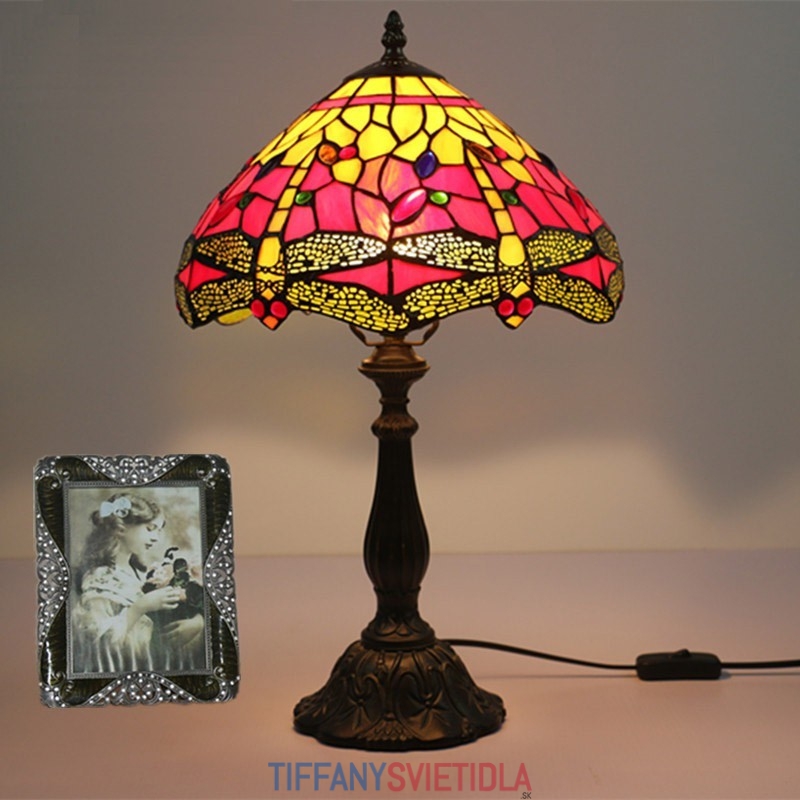 30 cm Európska stolná lampa Tiffany v štýle vážky z farebného skla