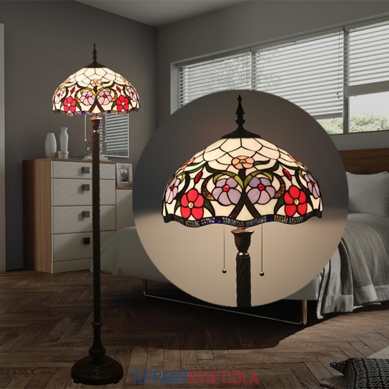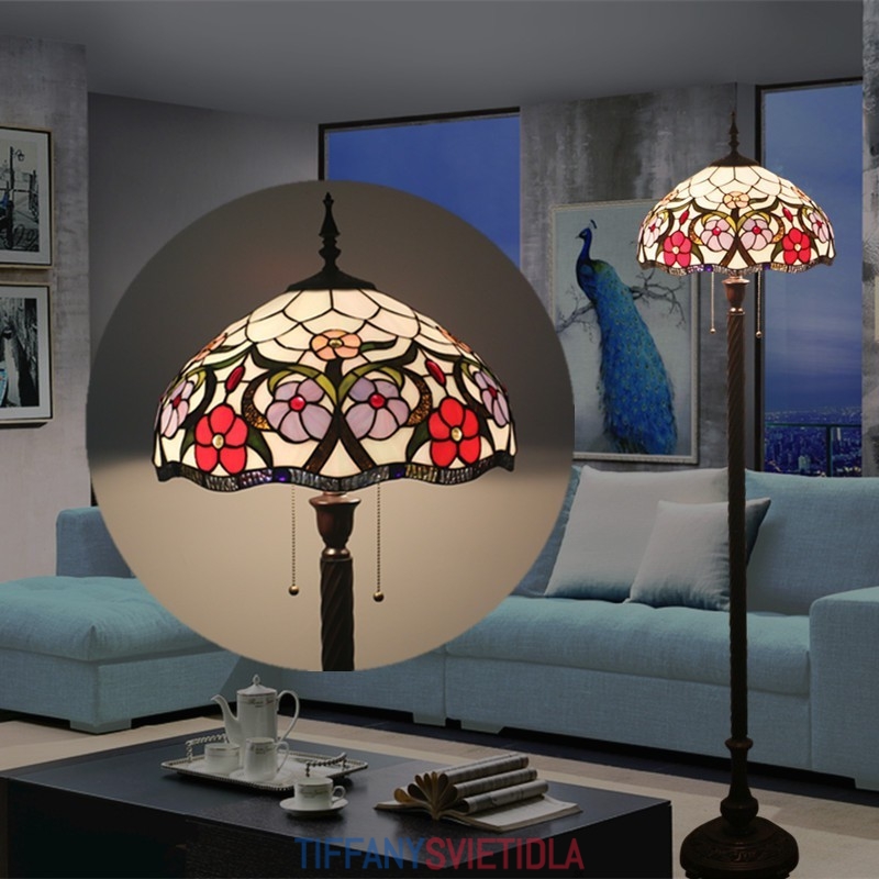 40 cm Európska retro vitrážová podlahová lampa Tiffany