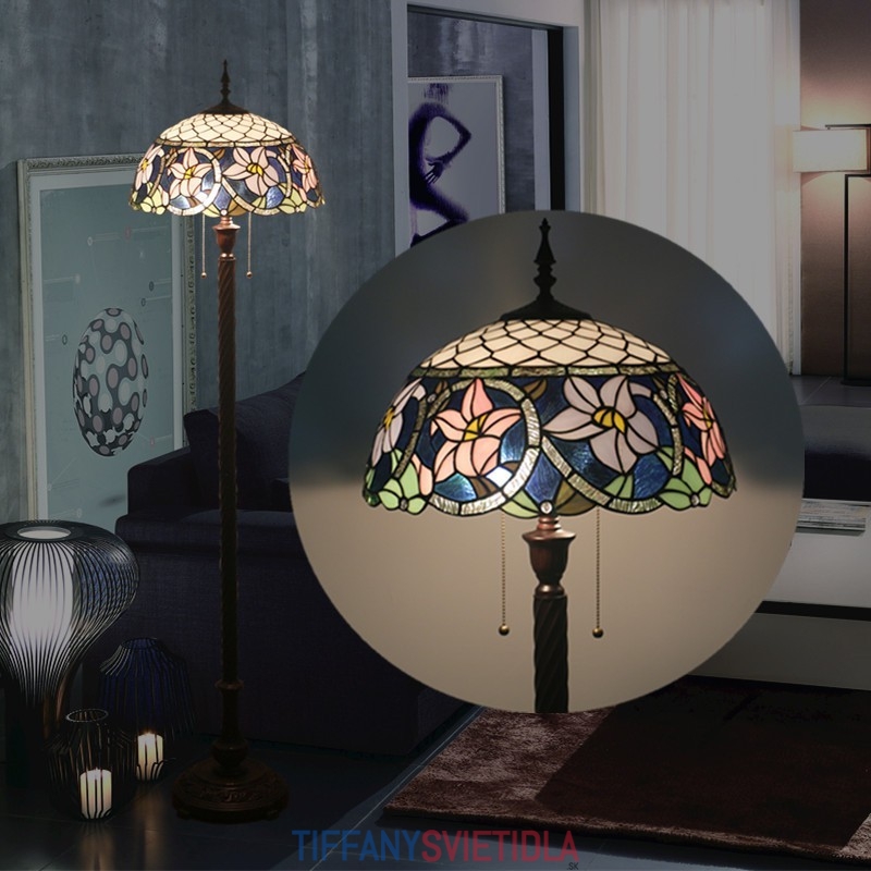40 cm Európska retro vitrážová podlahová lampa Tiffany