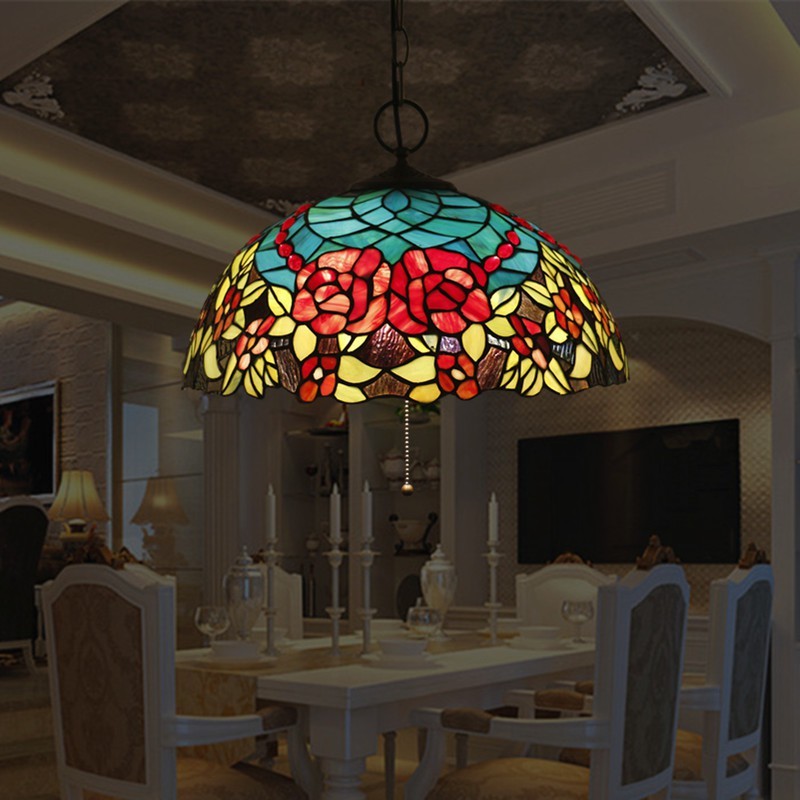 40 cm Európske závesné svietidlo Tiffany z farebného skla