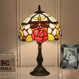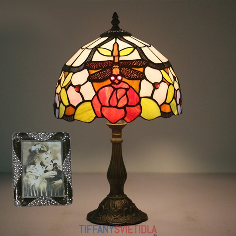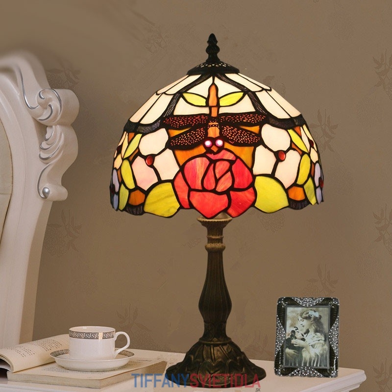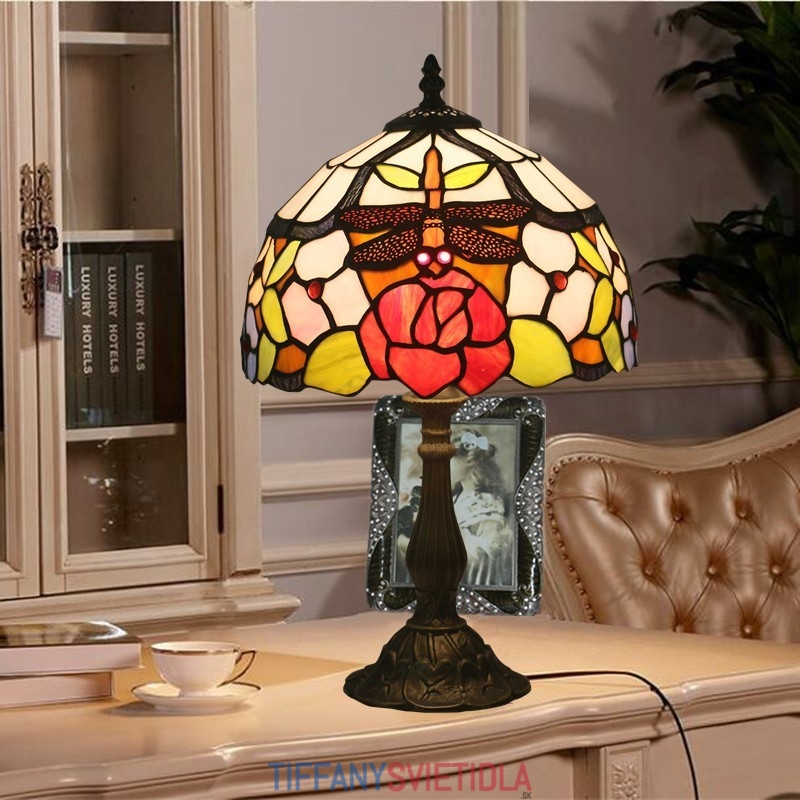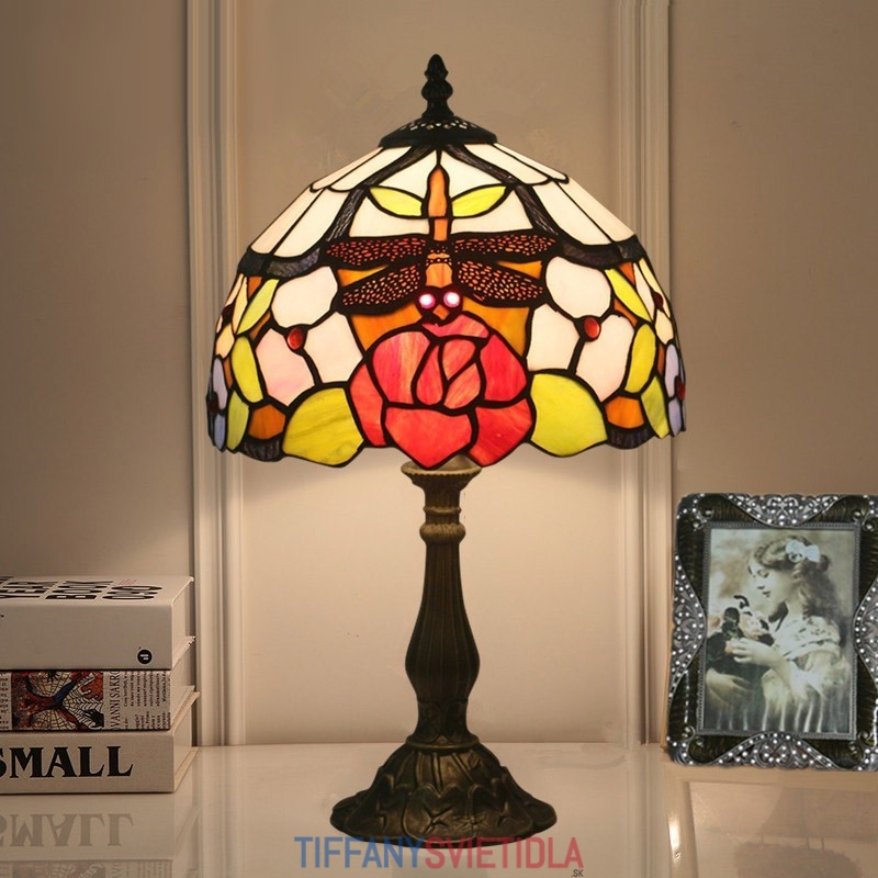 25 cm Európska stolná lampa Tiffany z farebného skla v štýle vážky