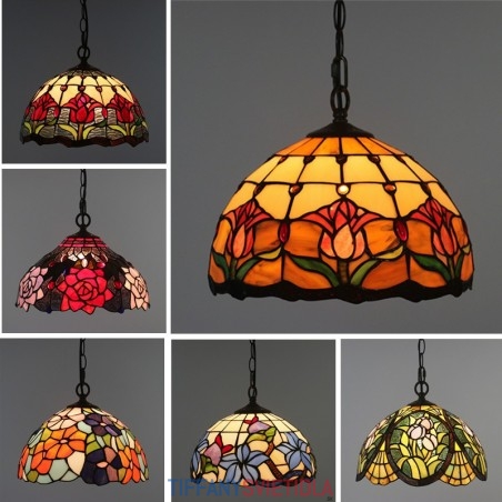 30 cm Európske závesné svietidlo Tiffany z farebného skla