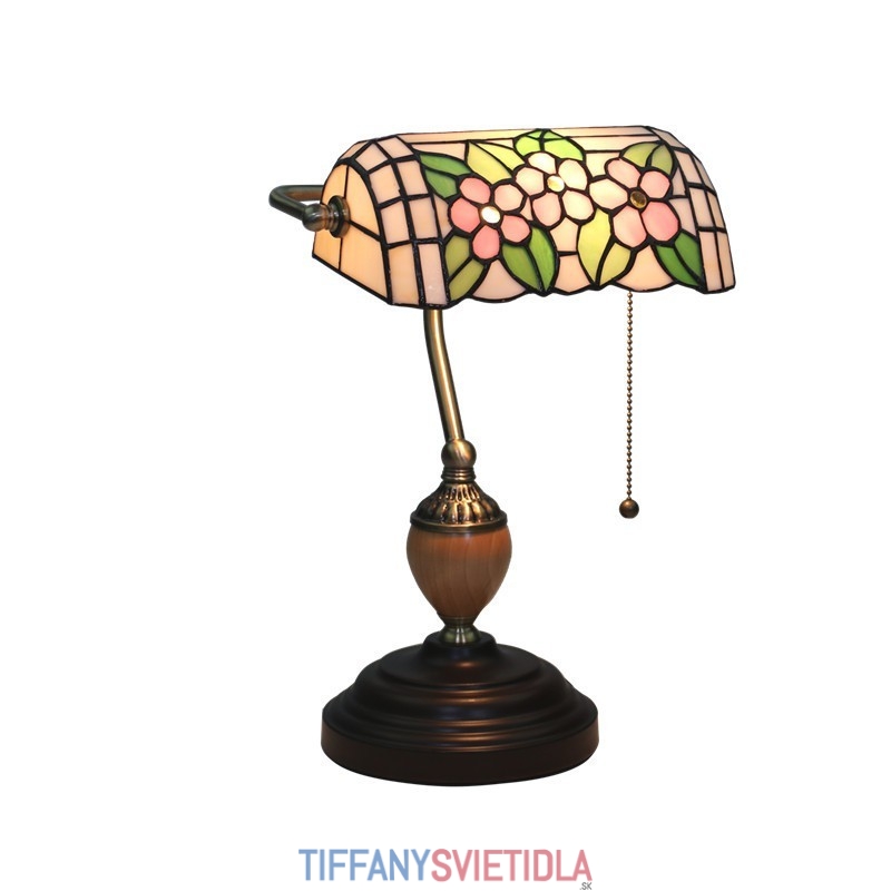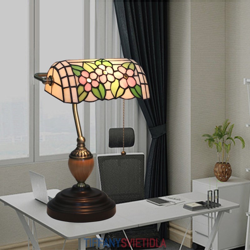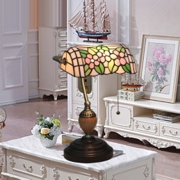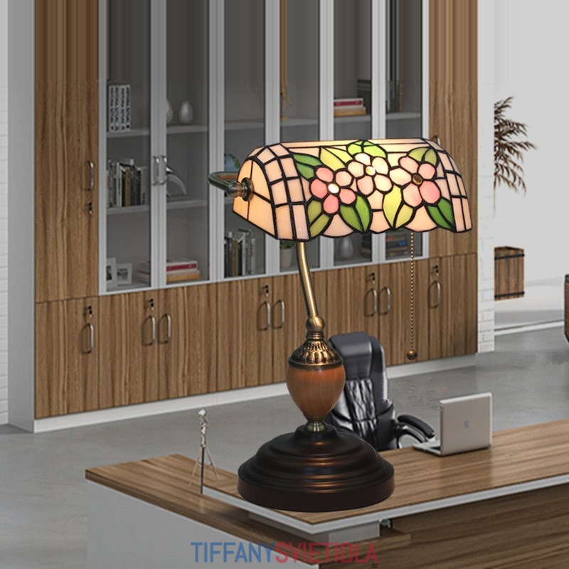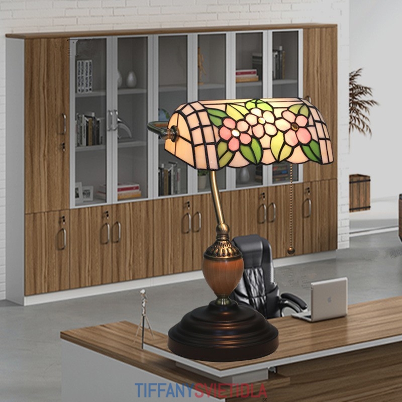 Vidiecka stolová lampa Tiffany z farebného skla