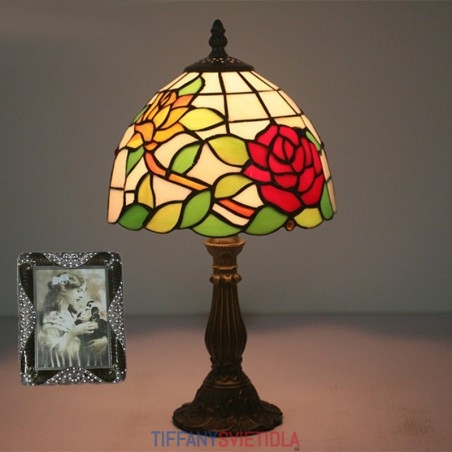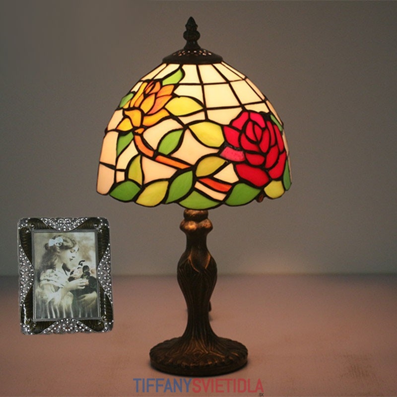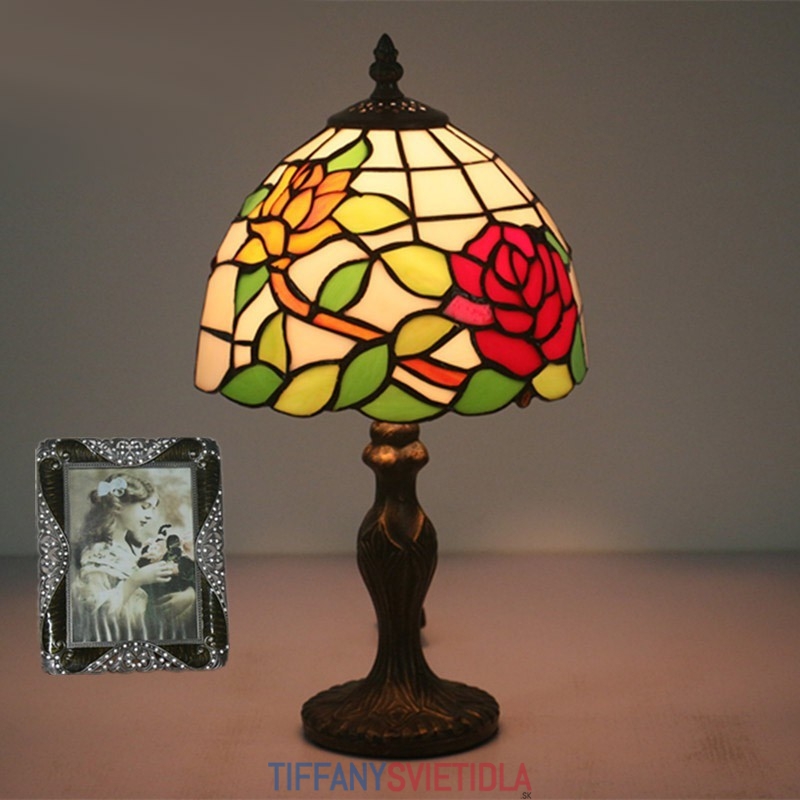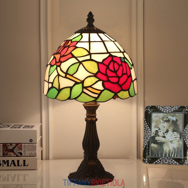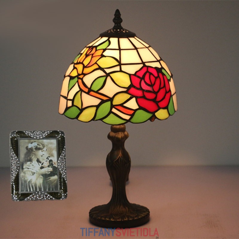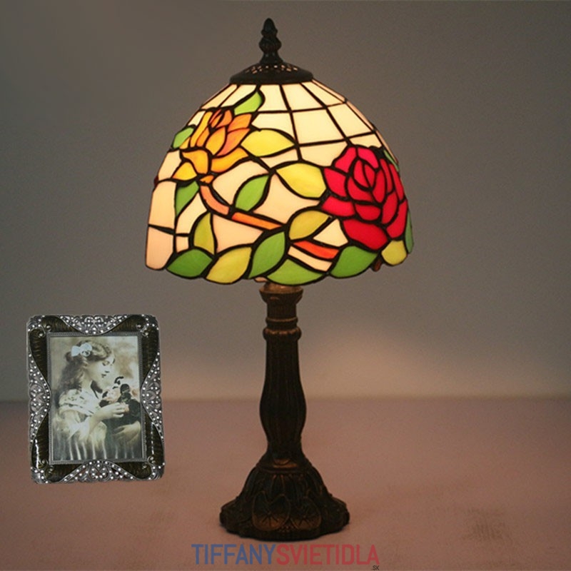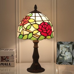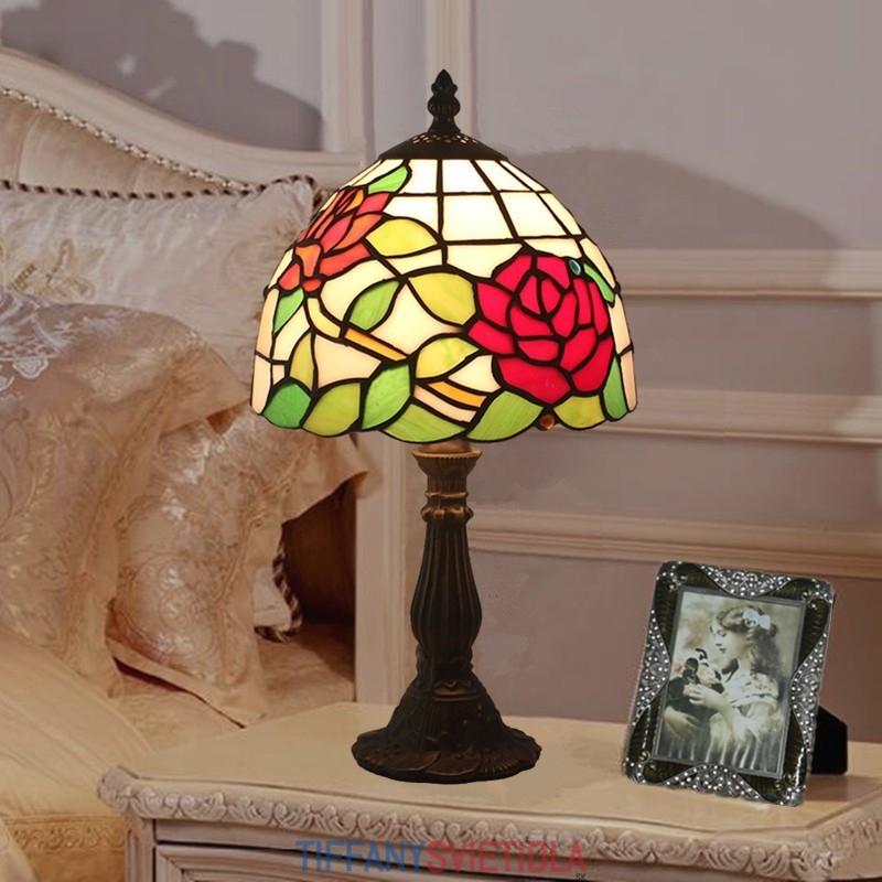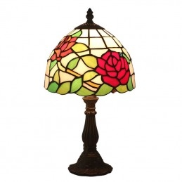 20 cm Európska stolová lampa Tiffany z farebného skla v štýle ruže